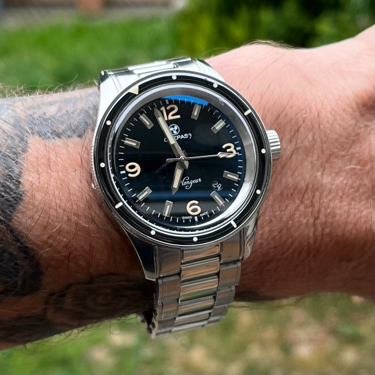 Die Bronze kommt wirklich gut, das Band ist super geschmeidig und bildet mit der Uhr eine stimmige Einheit.