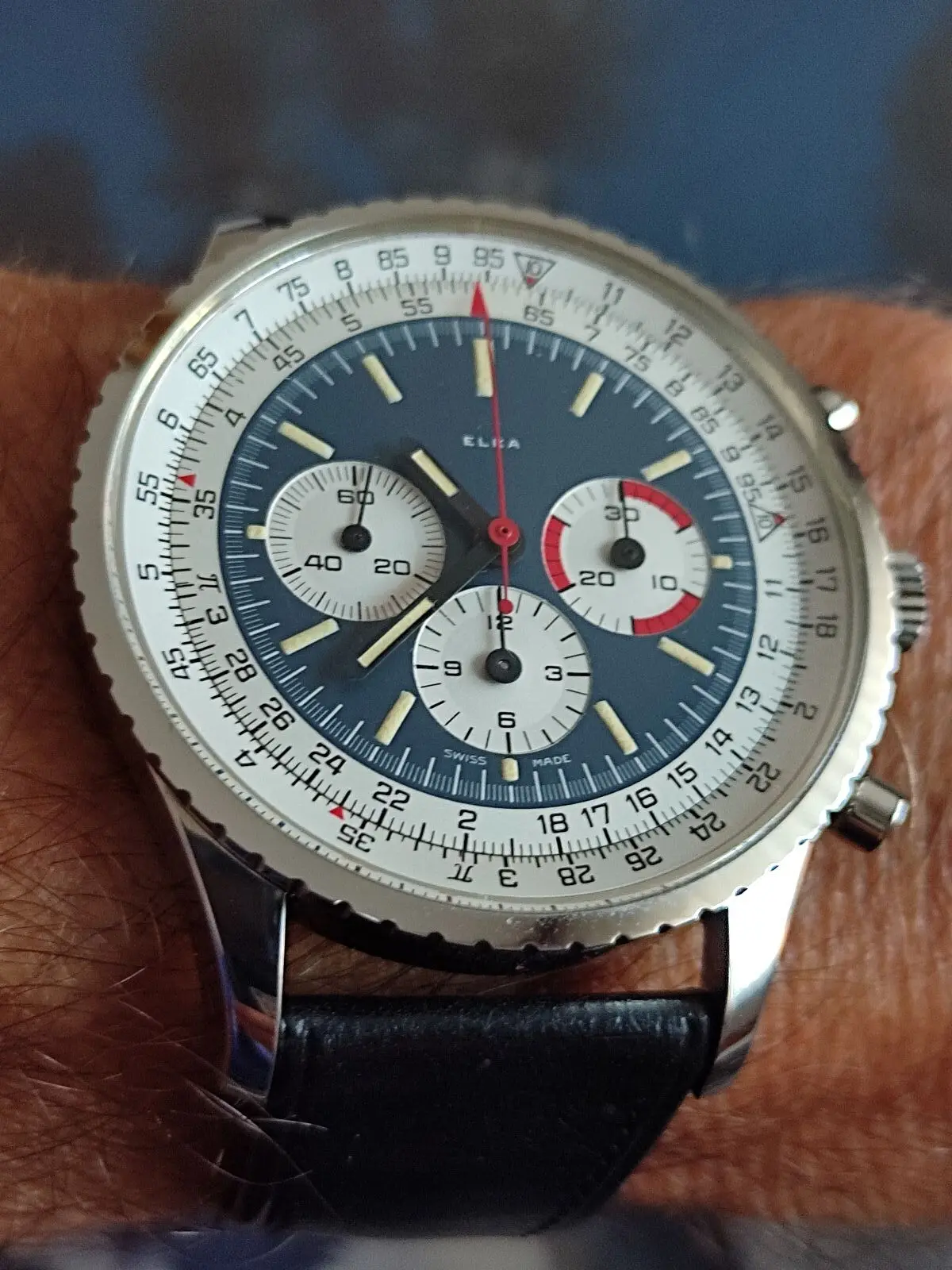 Denkt euch an Stelle der Elka Signatur den Namen SINN und Ihr habt den ersten Sinn 903 Chronographen aus wahrscheinlich Anfang der Siebziger mit dem großartigen Kaliber EP 40-68 von Excelsior Park. Übrigens suche ich immer noch nach solch einem Chronographen