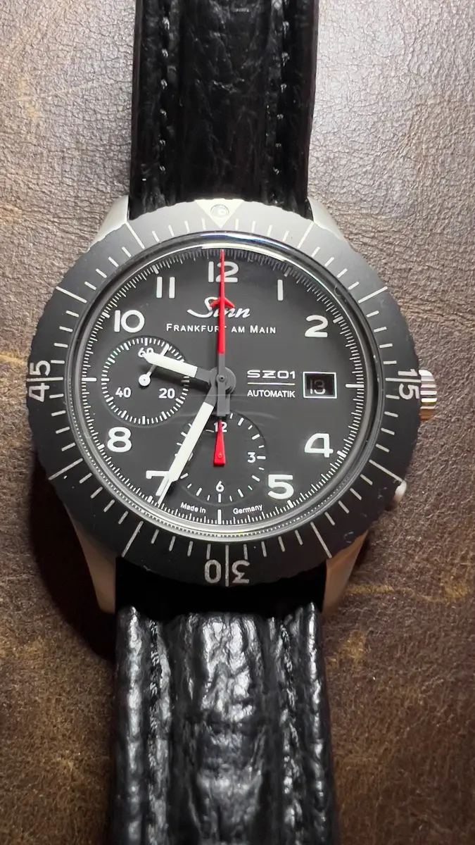 Hat Sinn wahrscheinlich so gemacht, damit das Datumsfenster beim Stoppvorgang nicht verdeckt wird… eine Fehlentscheidung, wie ich finde…der Zeiger ist öfter bei 12 als bei 3.