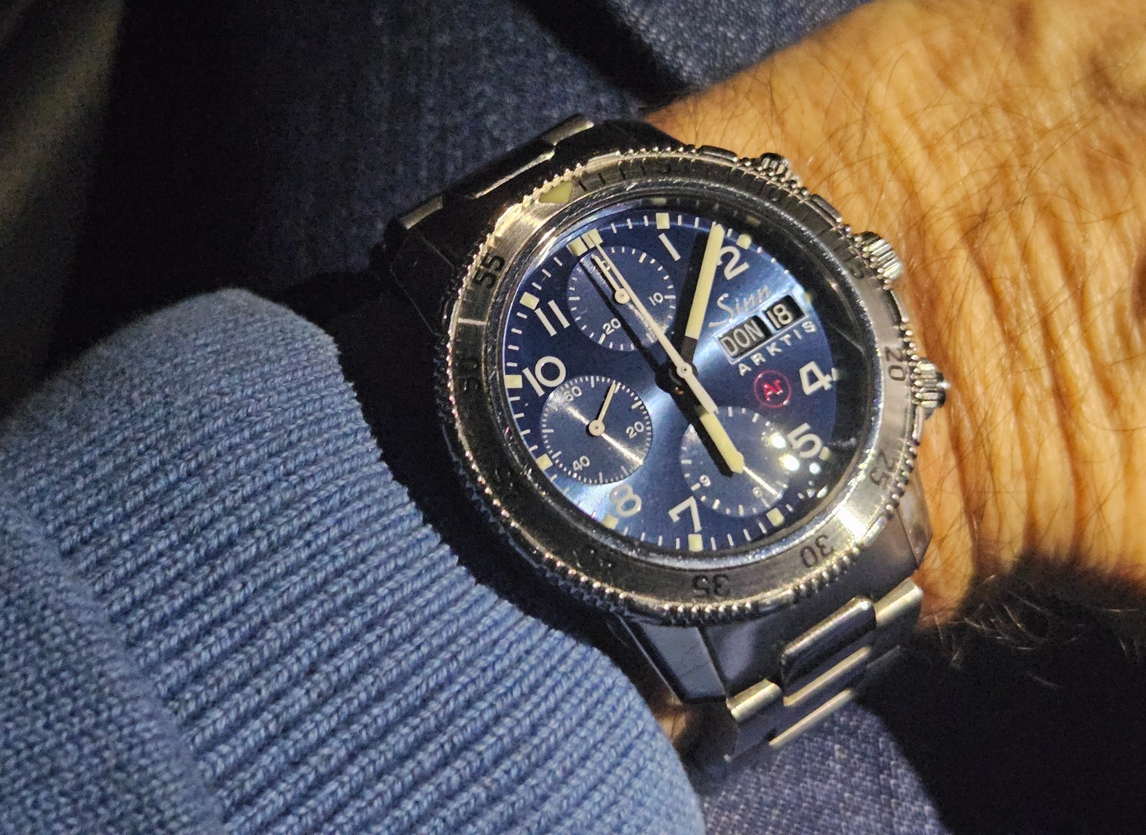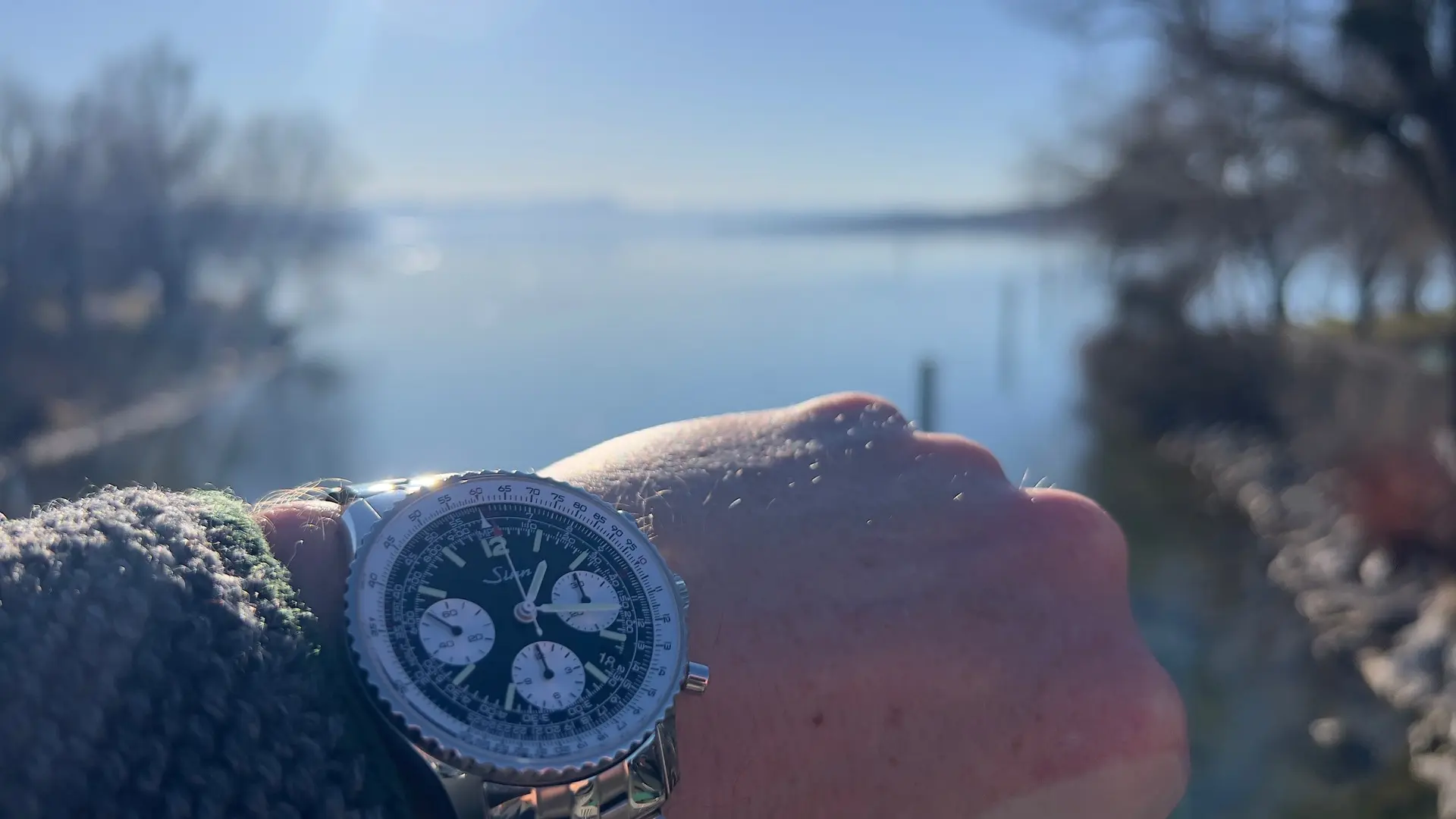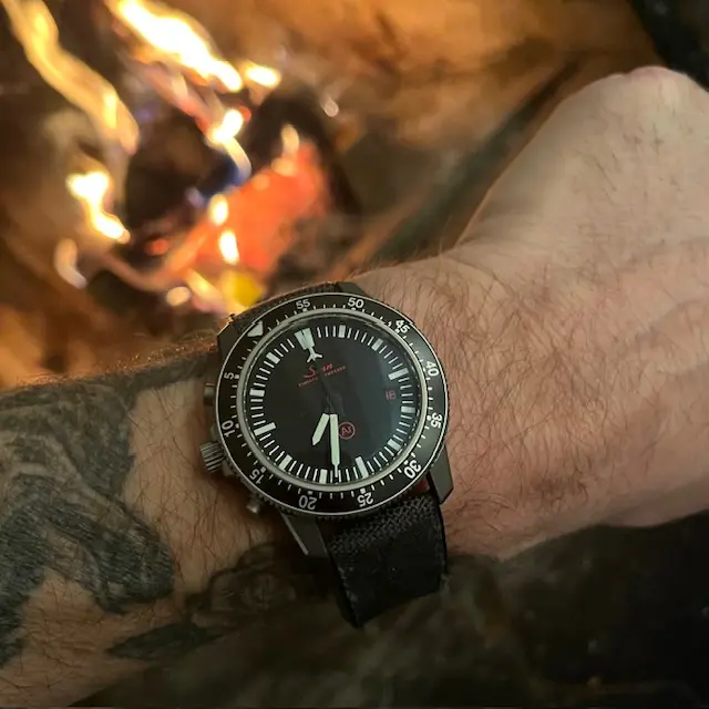 Da sie zu den kleineren Uhren meiner Sinn-Sammlung gehört, trage ich sie nur selten. Ich trage sie seit dem zweiten Tag und es ist absolut keine Gangabweichung seit dem Einstellen der Zeit feststellbar. Sie ist an einem Steveo-Canvas-Armband, das ich speziell für diese Uhr anfertigen ließ – sie ist die einzige meiner Uhren mit einer Bandanstoßbreite von 18 mm.
