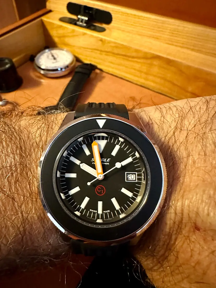 Ist aber eine ganz tolle Uhr und die allererste eigenständige Sonderedition von Neu Guinand, limitiert auf 100 Stück mit extrem aufwendigem Sandwich Blatt und div. Sondergravuren zu Helmuts rundem Geburtstag. Aber sie kam in sehr gute Hände und blieb zum Glück hier im Sinn Forum...