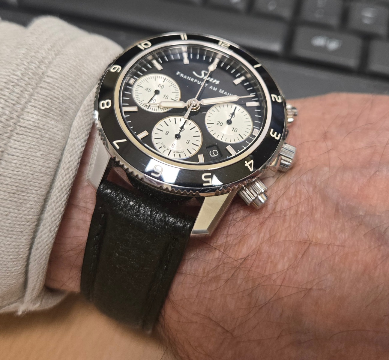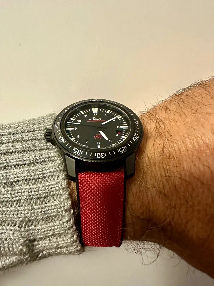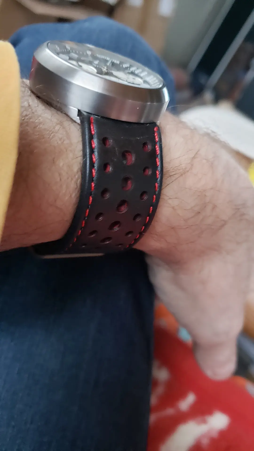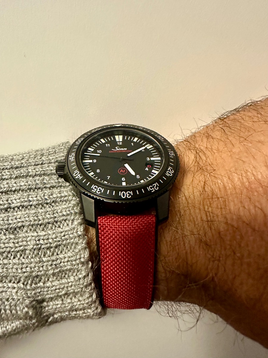 Das originale Band in L blieb latürnisch unberührt, modifiziert wurde ein aus der Bucht gefischtes neues in S - puhhh : Passt auf dem vorletzte Loch.