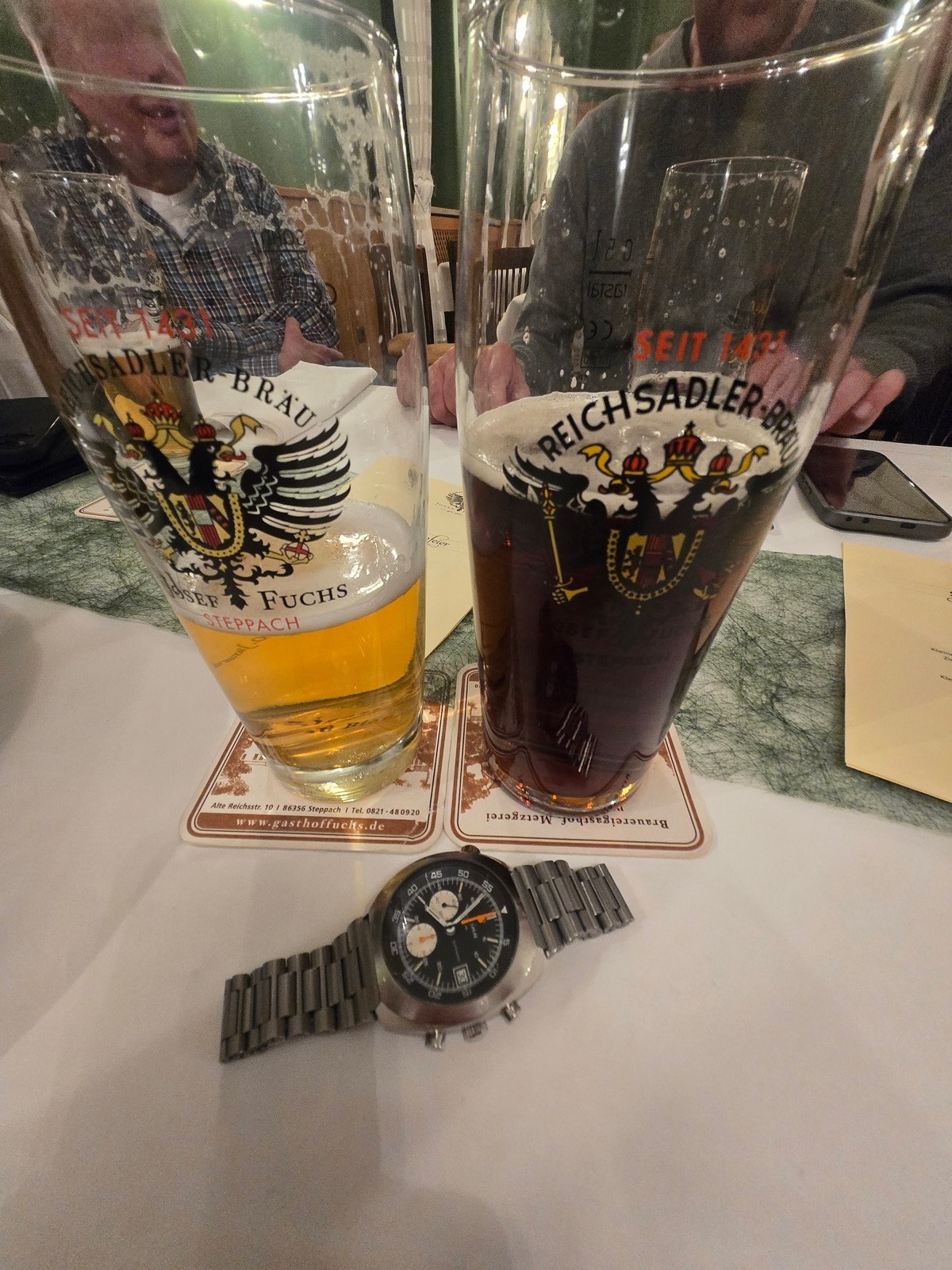 …nachdem ich gestern echt Mühe hatte mit dem Wechsel von Leder- auf das feingliedrige Metallband (letzteres war der mühevolle Teil, ich hatte es gepostet, findet sich jetzt an anderer/passenderer Stelle hier wieder) und danach ein paar Erfahrungswerte/Tipps bekommen hatte (u.a. von AndiS), hab‘ ich heute mein Talent nochmal auf die Probe gestellt/herausgefordert. Nix wars, das feingliedrige ging zwar gut runter, das „old-style“ Teil mit den drei Gliedern war aber störrisch. Ich: ab zum Sinn am Frankfurter Römerberg, wo mir eine Sinn-Kollegin sehr verständnisvoll (falls sie es lesen sollte: Danke!!!) geholfen hat. Und mir gesagt, das ich die für ein Metallband untauglichen (weil ich zwar mit den „Rillen“ versehenen) Federstege benutzt hatte, aber die mit eckigen statt runden Köpfen der Enden. Merke: Quadratschädel taugen nix für Metallbänder. 🥳