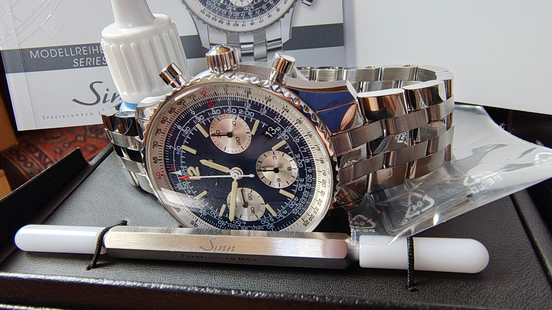 Das Blau meiner 903 ist sehr dunkel, je nach Lichteinfall erscheint es fast schwarz. Insofern gefällt mir das Zifferblatt Deines neueren Modells wesentlich besser. Vielleicht legt ja Sinn nochmals nach und es gibt ein weiteres 903 Modell mit blauem, grauen oder wie auch sonst immer farbig gestaltetem Zifferblatt. Dann könnte ich u.U. schwach werden.