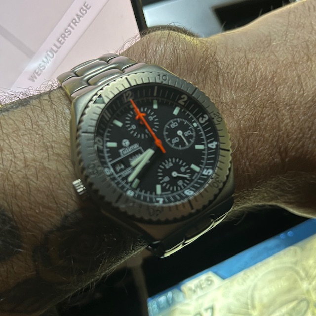 Meinen Glückwunsch zu Deinem Neuerwerb. Die blaue 903 hat mir auch schon immer als Ergänzung meiner 903 Handaufzug mit schwarzem Zifferblatt aus dem Jahr 1994 gefallen. Ich habe mich dann aber für eine der letzten alten 903 St B E entschieden, die ich 2023 noch bei Sinn bekam. Vom 5 gliedrigen Metallband habe ich sie auf ein toll dazu passendes Canvas Band umgerüstet, welches eine kleine Band-Manufraktur in der Bähe von Denver/Colorado/USA für mich fertigte. Es wurde aus den Resten eines Postsacks der Britischen Marine aus dem Jahr 1942 gemacht. Sehr geschichtsträchtig!