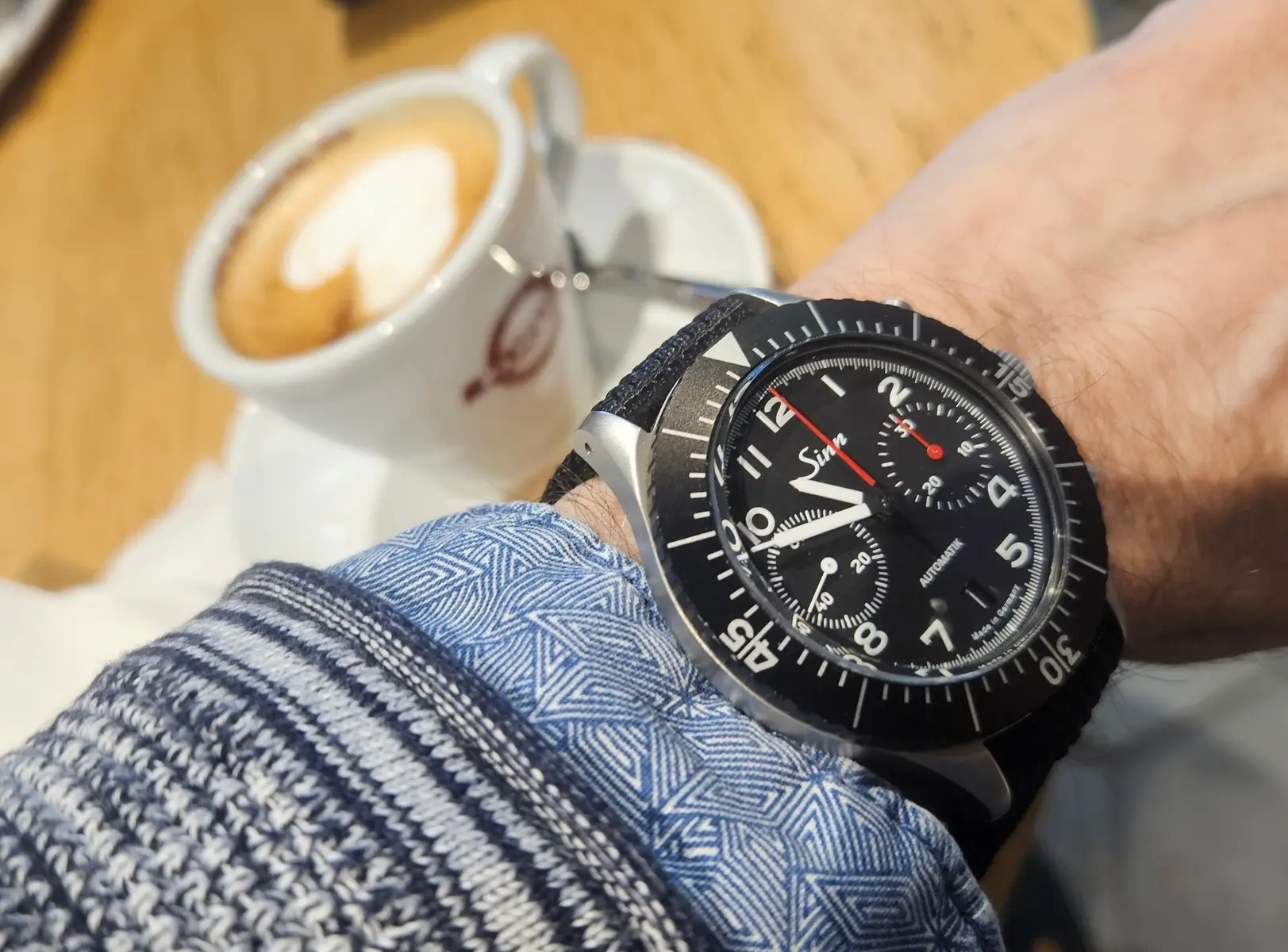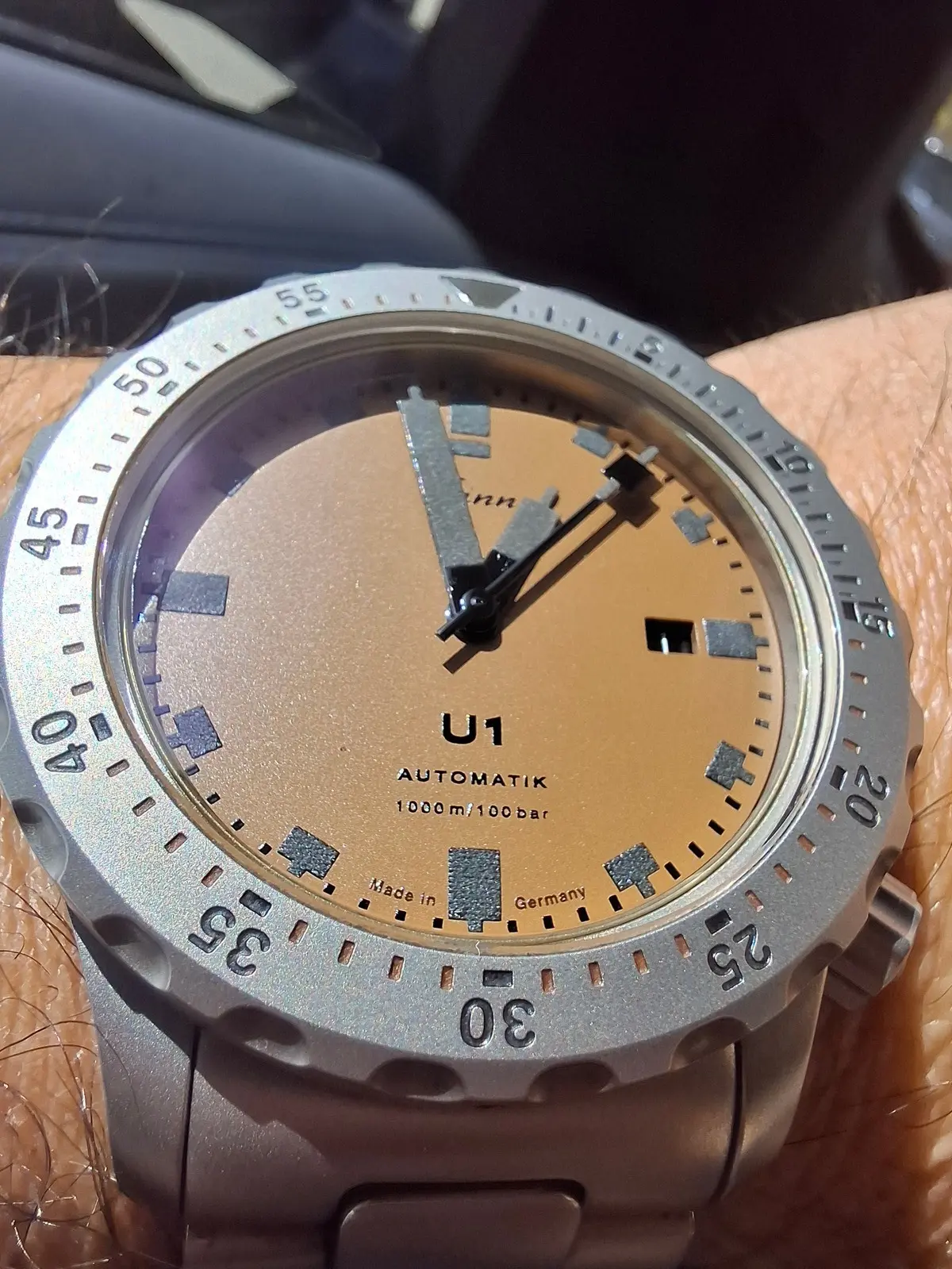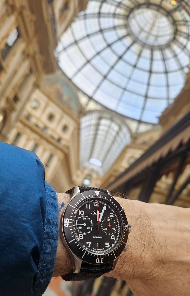 Moin, so, nach langer Zeit mal hier wieder aktiv. Habe vor einer Woche das Jubiläumsmodell bestellt und gestern konnte ich es schon in Frankfurt abholen. So muss das. Aber es musste ein anderes Band dran - das Metallband ist mir dann doch zu viel blingbling und die Farbe des dazugehörigen Lederarmbandes ist - sagen wir es mal vorsichtig - interessant.