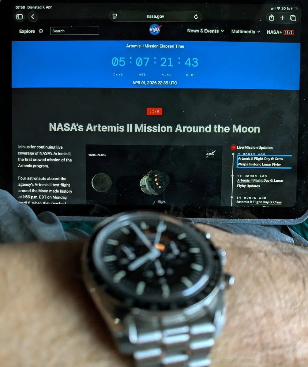Auf den ersten Blick eine mutige Uhr-/Bandkombination, die ich meiner 156.1 E nicht antun wollen würde. Meine ist amklassischen Stahlband, aber auf den zweiten Blick hat Deine Kombination irgendwas faszinierendes an sich! Meinen Glückwunsch!
