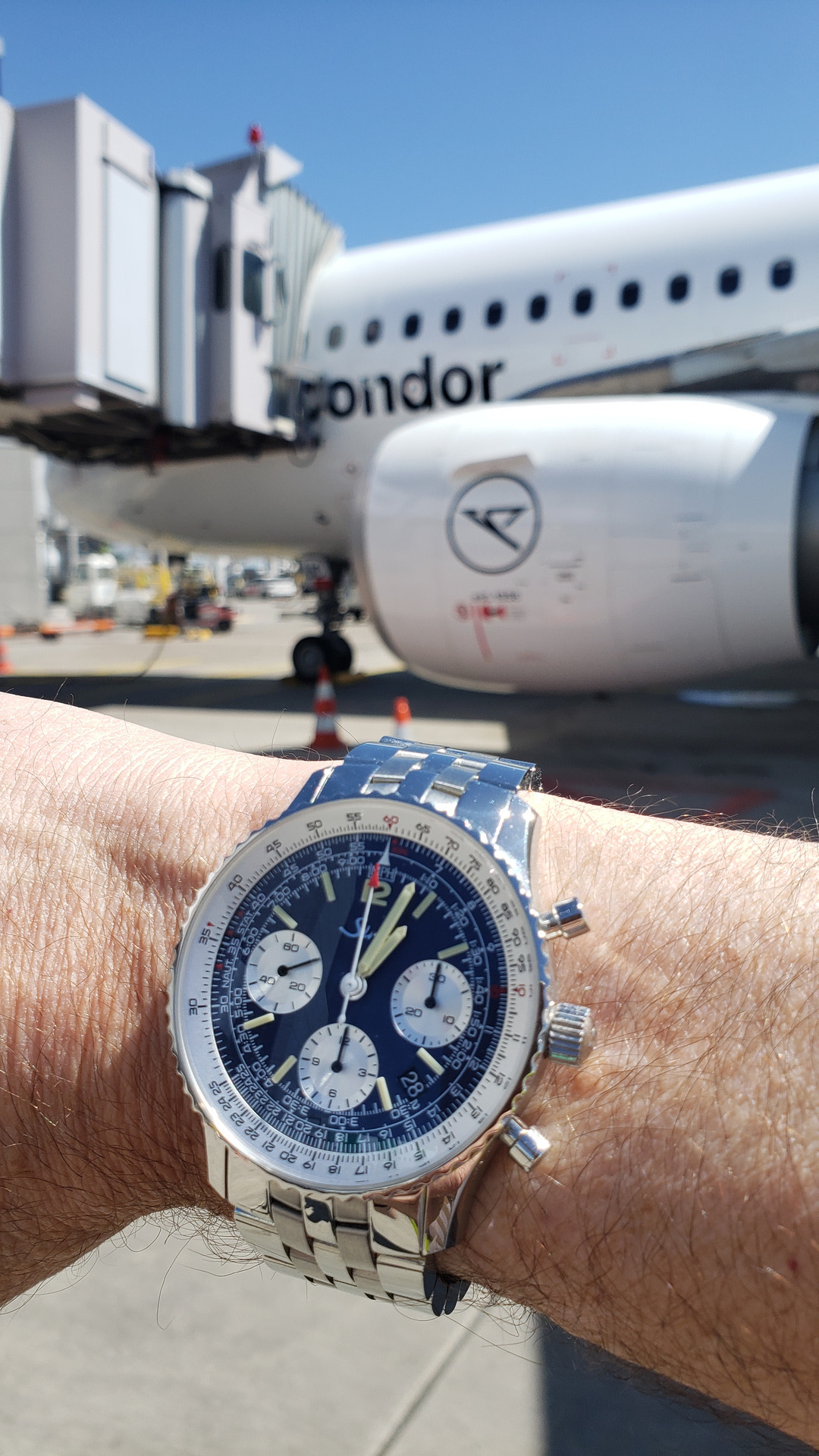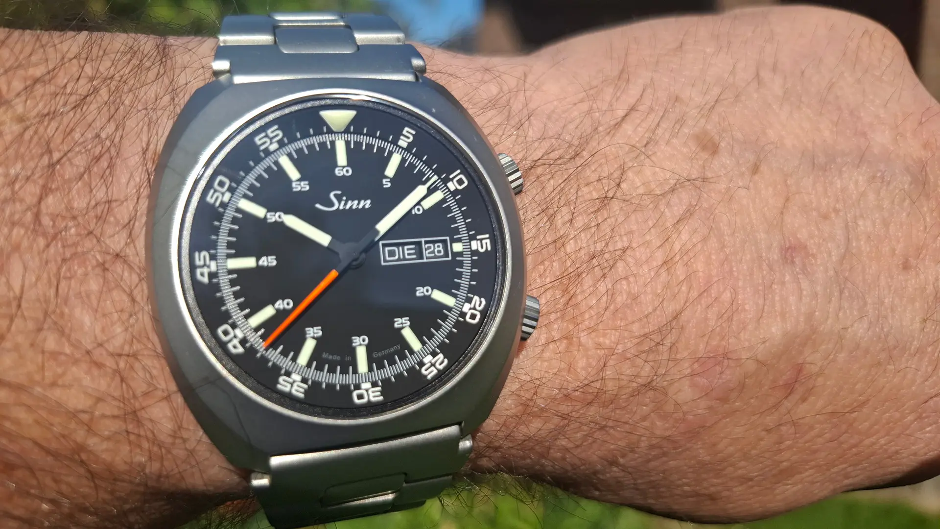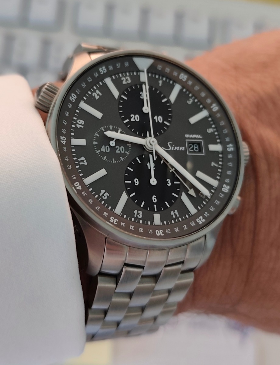 Endlich zurück am Handgelenk - meine 103 hatte nur realtiv kurze Zeit nach Wartung & Aufrüstung/Umbau (Diapal, Ar, Zeiger) angefangen zu „prellen“ (oder heißt es „prallen“)…was zu einem extremen Vorgang geführt hat, mit aktivierten Chronos noch mehr als ohne. Gestern in Sossenheim abgeholt…: Der Anker musste nachjustiert werden, sagt die Nullrechnung (war ein Garantiefall).
