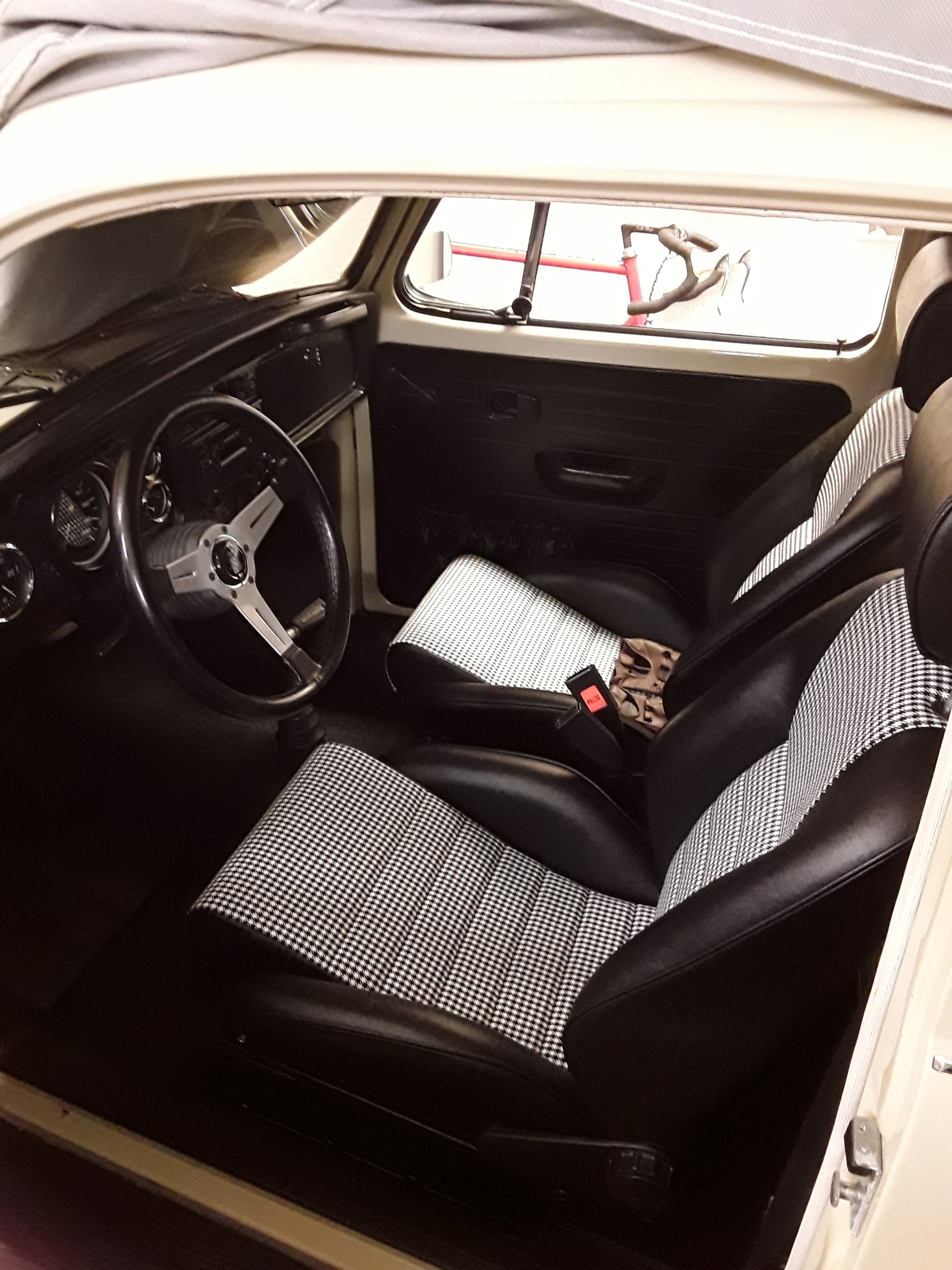 nachdem ich 30 Jahre lang mit 911 Sitzen ohne anständigen Seiteninhalt durch die Gegend gefahren bin, habe ich vergangenes Wochende meinem Käfer neue Sitze spendiert. Ich bin total happy, sieht wie ich finde klasse aus und ich sitze endlich richtig gut. :)