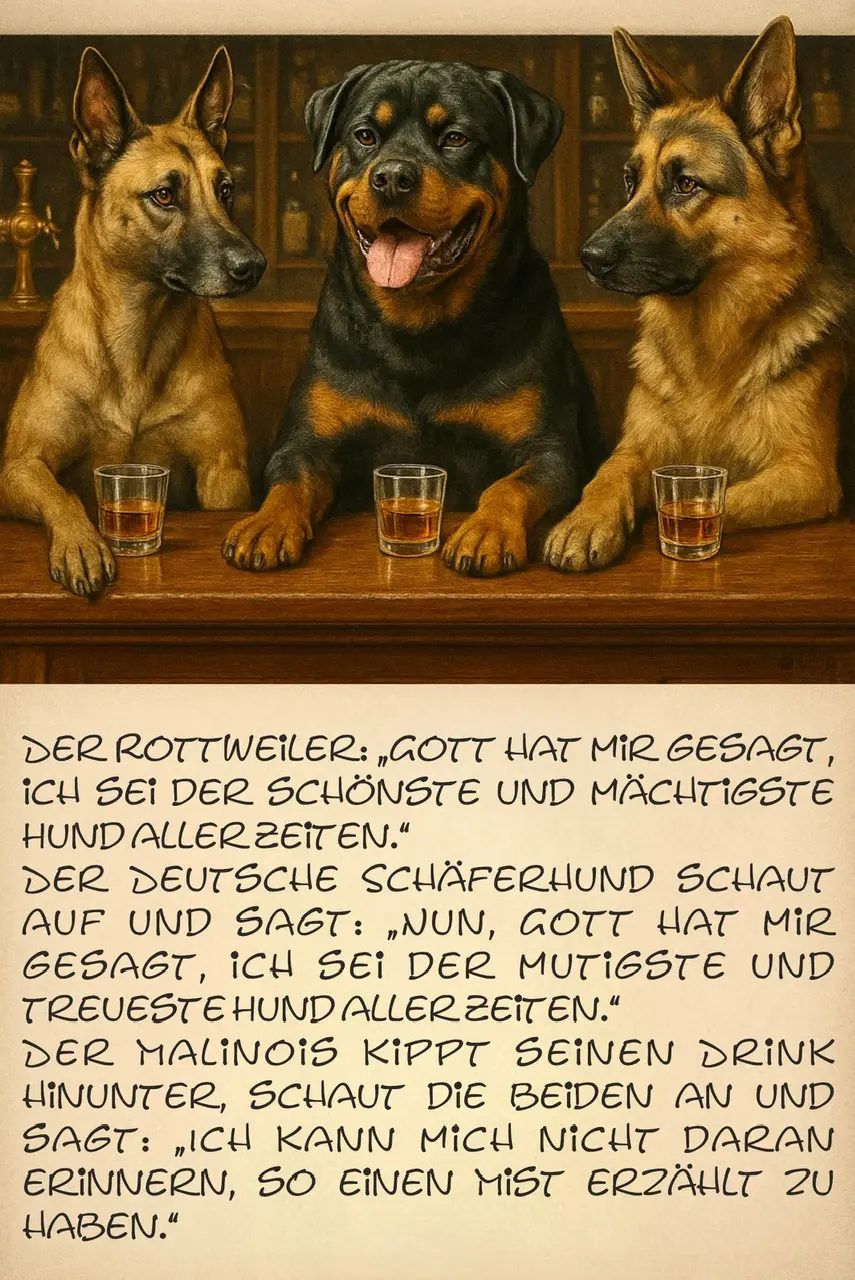 Nach einem weiteren Monat der "Sandtransporte" hält es der Zöllner nicht mehr aus und fragt den Mann: "Also, ich gebe es Ihnen schriftlich, dass ich nichts verrate, aber Sie schmuggeln doch etwas. Sagen Sie mir bitte, was!"