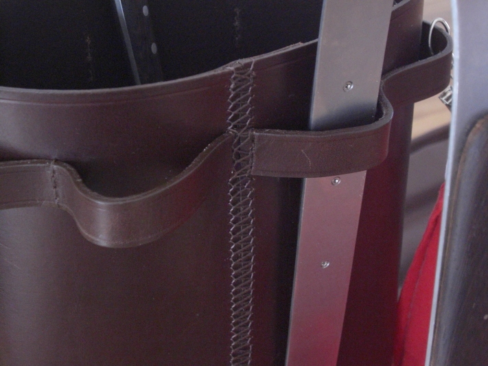 Die Ledertasche aus feinsten Nappaleder ist innen mit Alcantara ausgelegt sowie den Lederköcher (hängt am Balkongeländer) aus festen und dicken Sattelleder habe ich mir von einem Autosattler nach meinen Wünschen anfertigen lassen