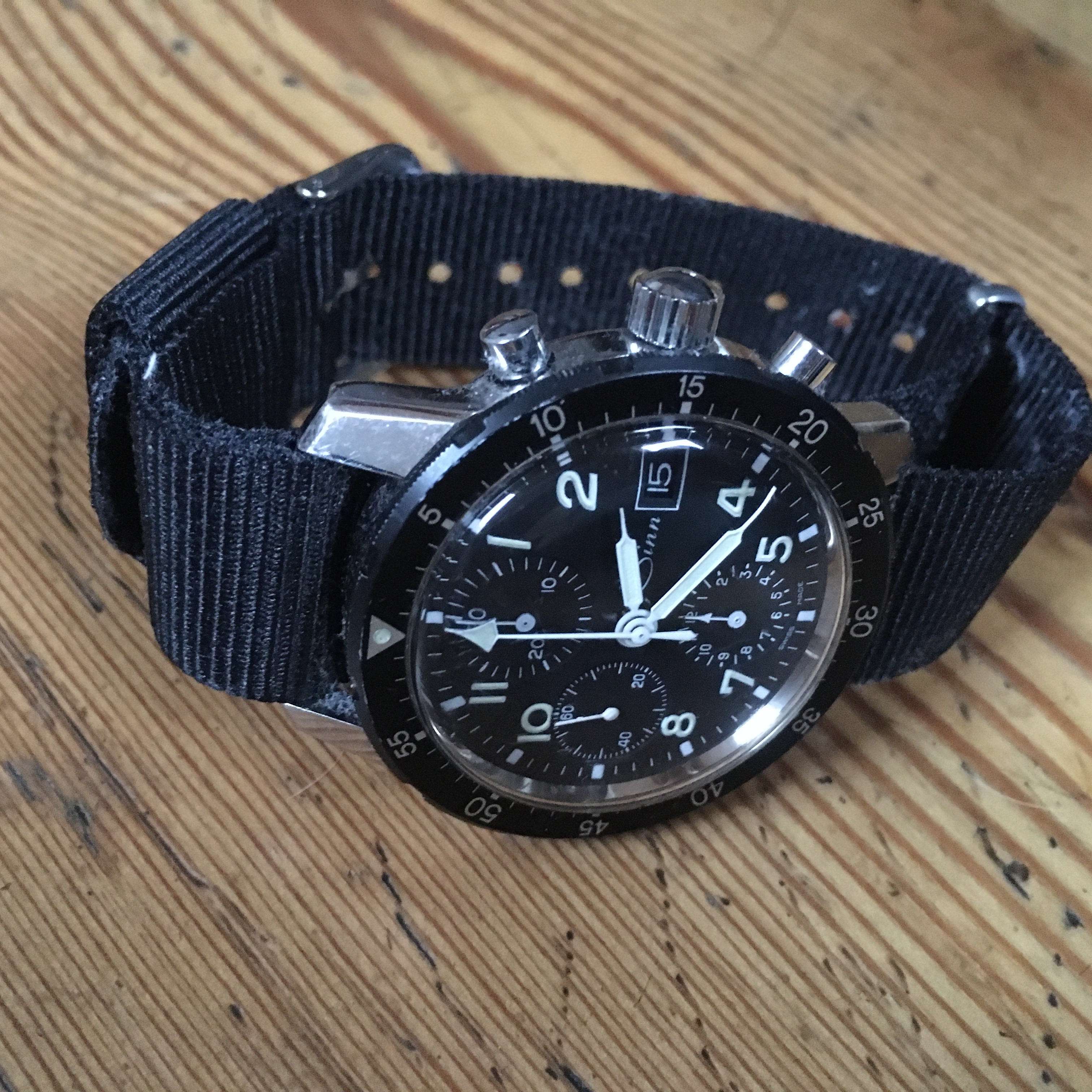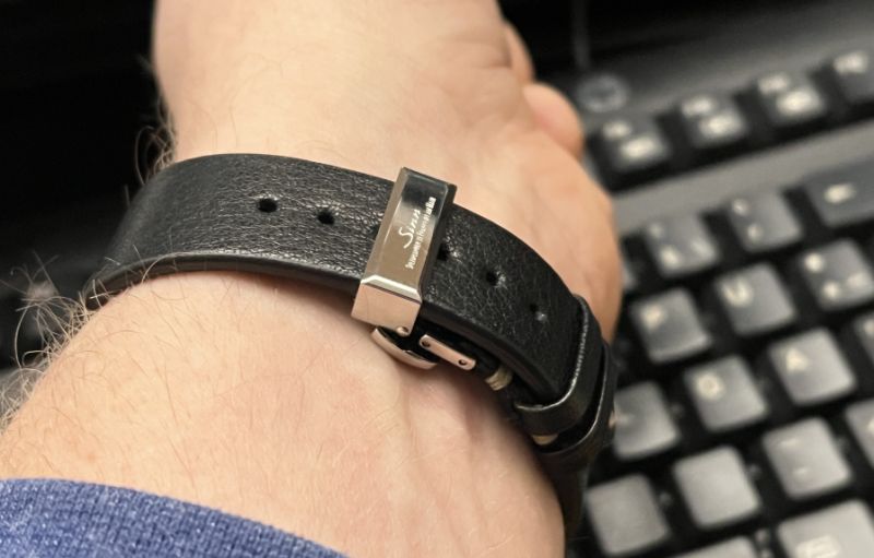 • Da ursprünglich das Silikonband mit Gehäuseintegration angebracht war, das mir irgendwie das Gefühl gab, eine doppelt so große Uhr zu tragen, habe ich anlässlich der Revision ein Chronissimo Band dazubestellt. Das ist interessanterweise bei Sinn mit dem Sinn-Branding und der Sinn-Schließe billiger als beim Originalhersteller DI-Modell. Es trägt sich nach einigen Tagen sehr angenehm.