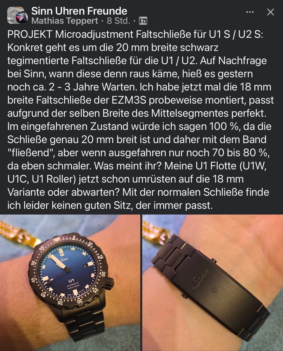 Naja ich trag ja eh kein Metallband mehr und richtig clever wird es für Sinn, wenn sie bei Neuuhren bereit die neue Schließe mit anbieten.