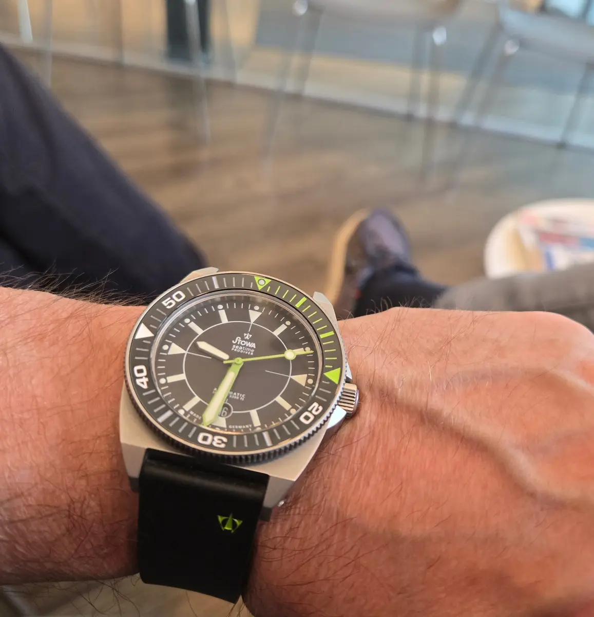 Ja, mit der 156.1 muß ich auch morgen bei Tageslicht nochmal schauen wie die Farben passen. Tragen tut sichs zumindest auch bei der großen Uhr super. Mein Favorit ist aber die 103