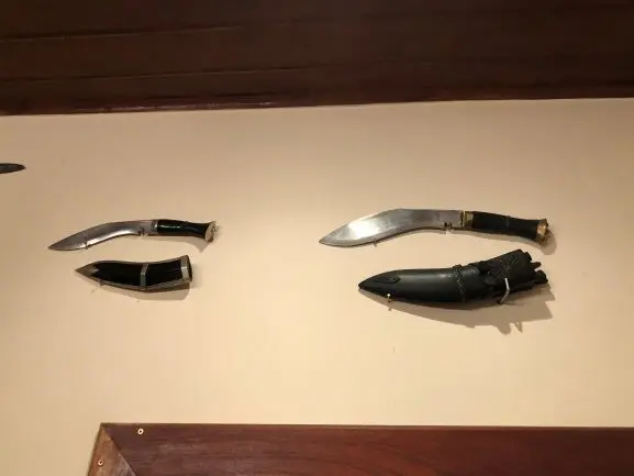 Kukri's, neue wie antike, die während verschiedener beruflicher Aufenthalte in Kathmandu/Nepal zwischen 1980 und 2004 gekauft wurden: