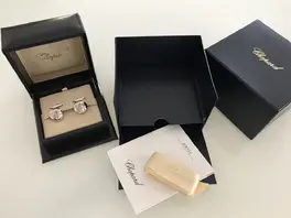 Sie sind neu und ungetragen, mit Box, Schachtel, Schleife, Unterlagen, und meiner Rechnung. Ich habe 233,00 Euro bezahlt. Aktueller Preis auf der Chopard-HP: 264,00 Euro