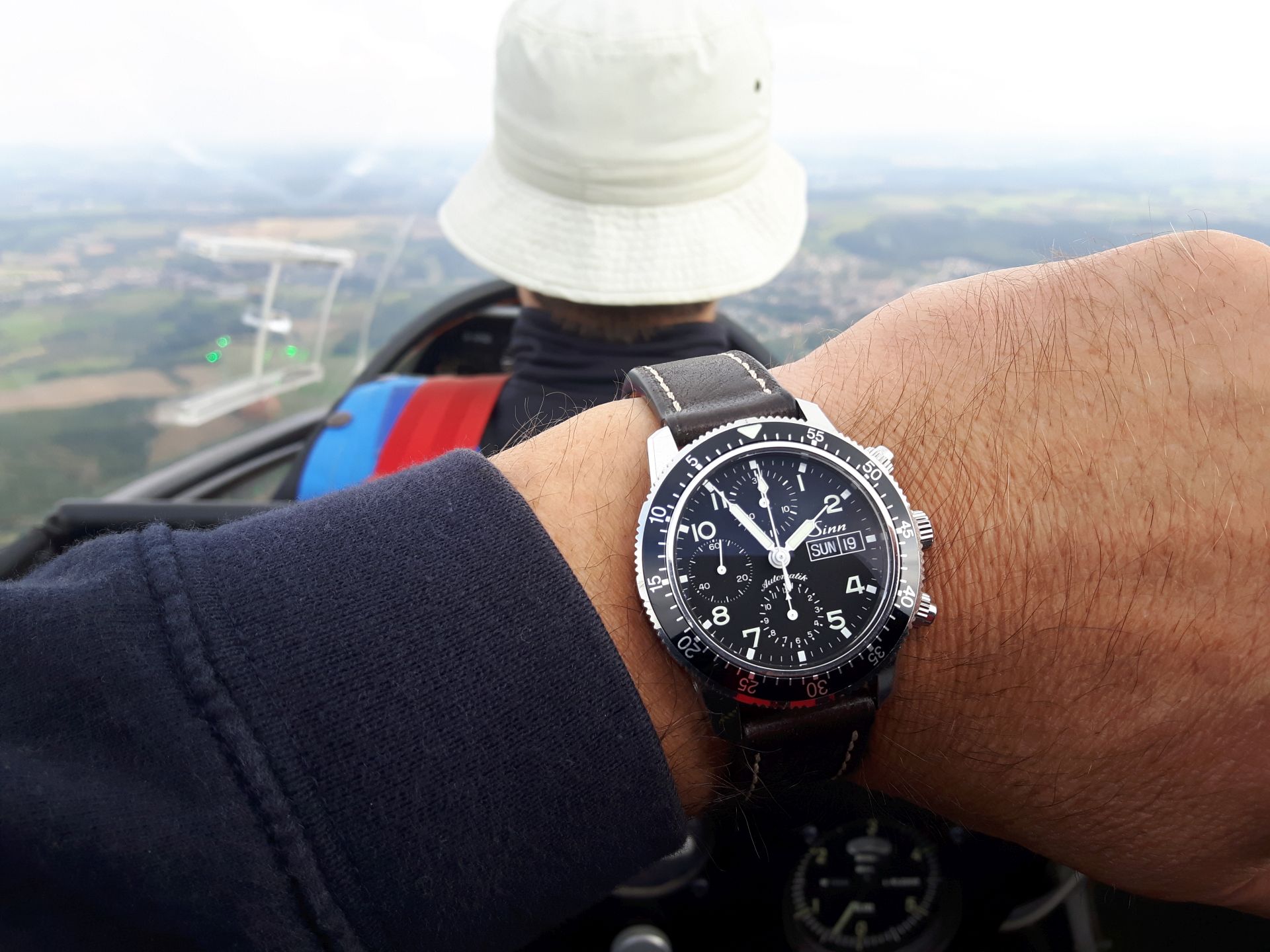 Am Sonntag als Fluglehrer in der ASK 13 unterwegs, am Arm die Sinn 103 St Sa.