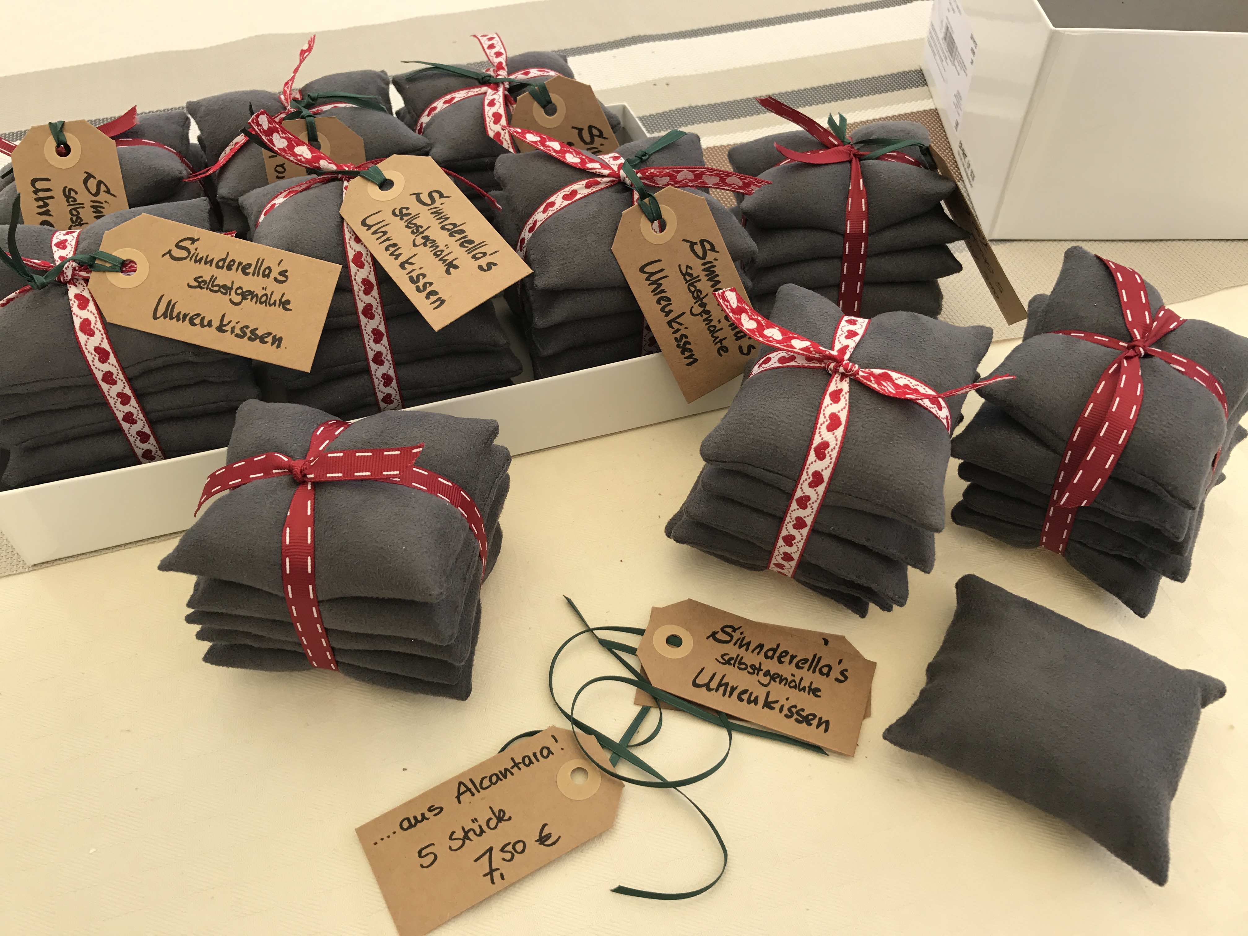 ich bestelle mir die Tage roten Stoff für Uhrenkissen.