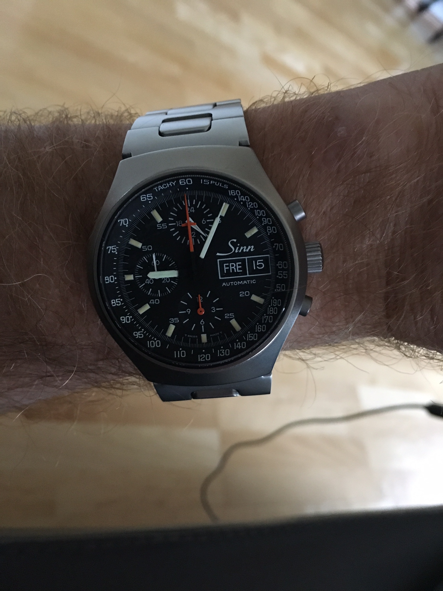 Das Gehäuse sieht wie neu aus, der Preis unter 200.- :P :P :P was will man mehr. Ich habe dann bei Sinn ein Glas, einen Zeigersatz und Krone mit Tubus bestellt, und mein Uhrmacher hat sie mit gereinigtem Werk wieder zusammengebaut. Einzig das Zifferblatt blieb alt, aber da bin ich dran und warte auf Sinn Antwort, ob es das noch gibt. Dann würde ich das im laufe des Jahres auch noch erneuern.