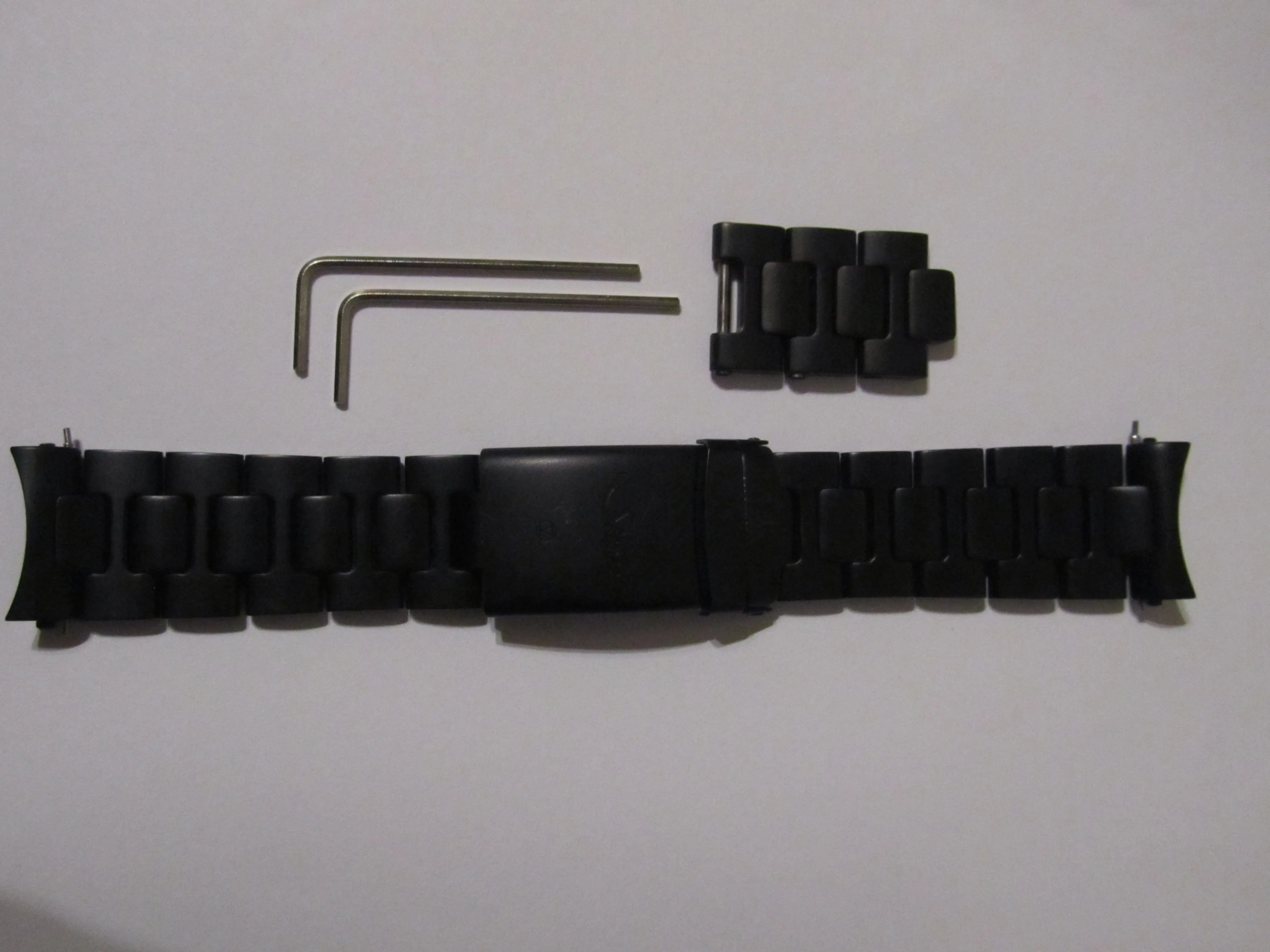 verkaufe ein schwarzes tegimentiertes Sinn Metallarmband 22mm neuste Ausführung (Inbusschrauben) in einem guten Zustand siehe Bilder. Auf der Aussenseite gibt es kleine Kratzer an der Schließe nichts wildes. Wenn man es 1-2 Wochen trägt sieht es auch so aus. Dort wo Metall auf Metall liegt gibt es ein paar helle Stellen. Das lässt sich aber nicht vermeiden. Und wenn es geschlossen ist sieht man es sowieso so gut wie nicht.