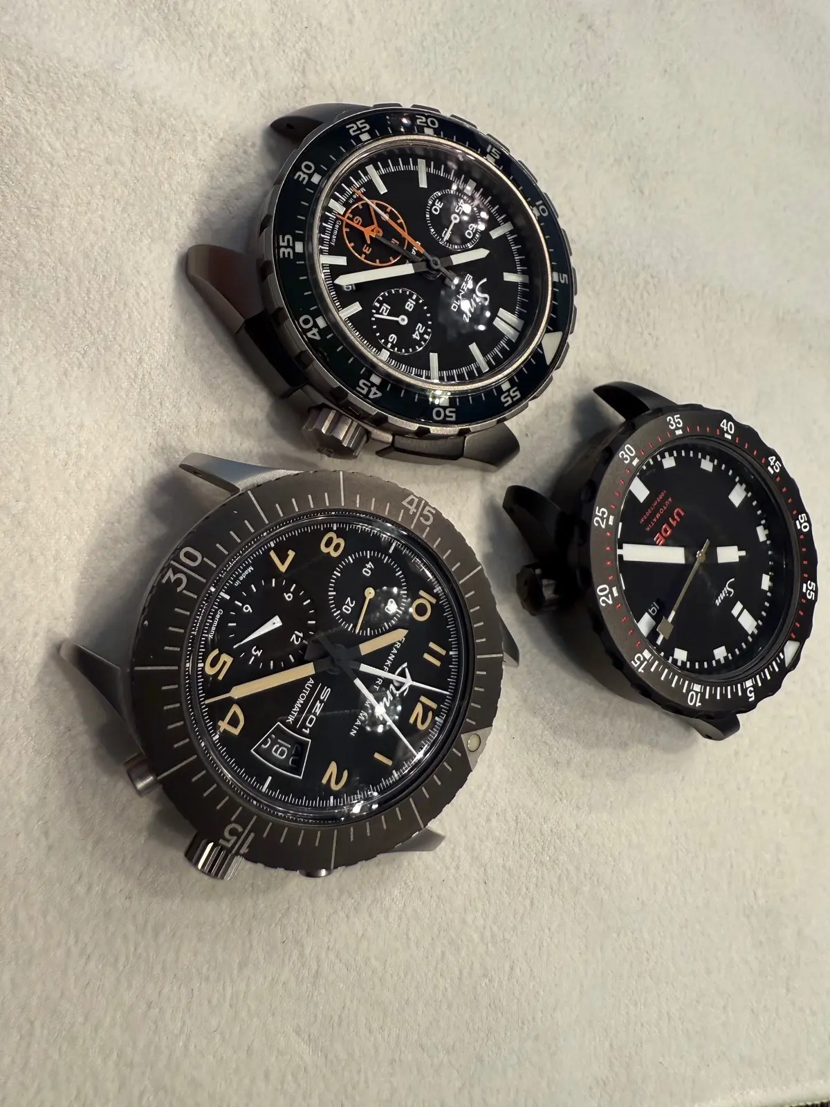 Die U-1000 war der erste Taucherchrono bei Sinn, der so hoch / tief dicht war. Einzigartige Drücker dazu.