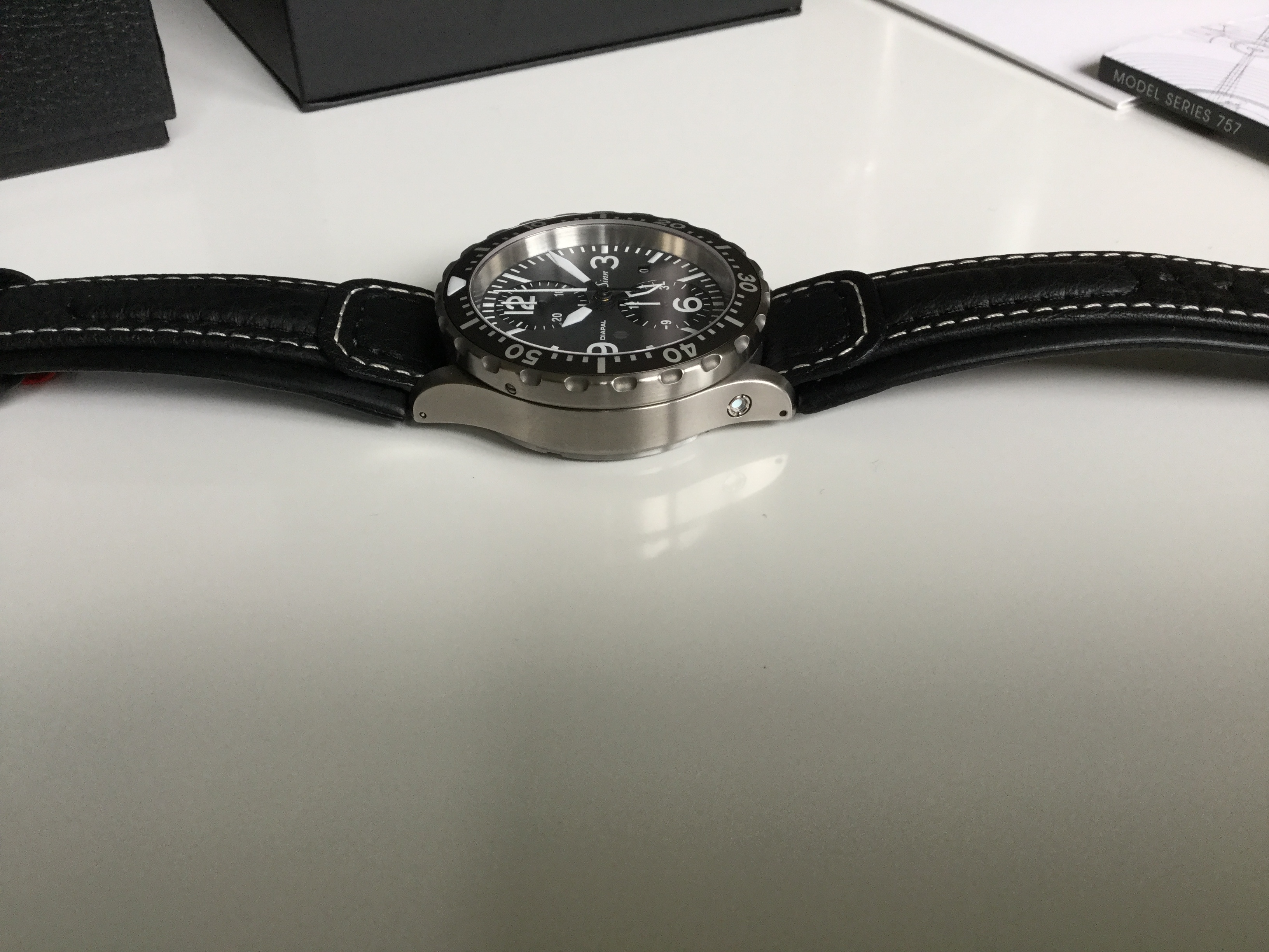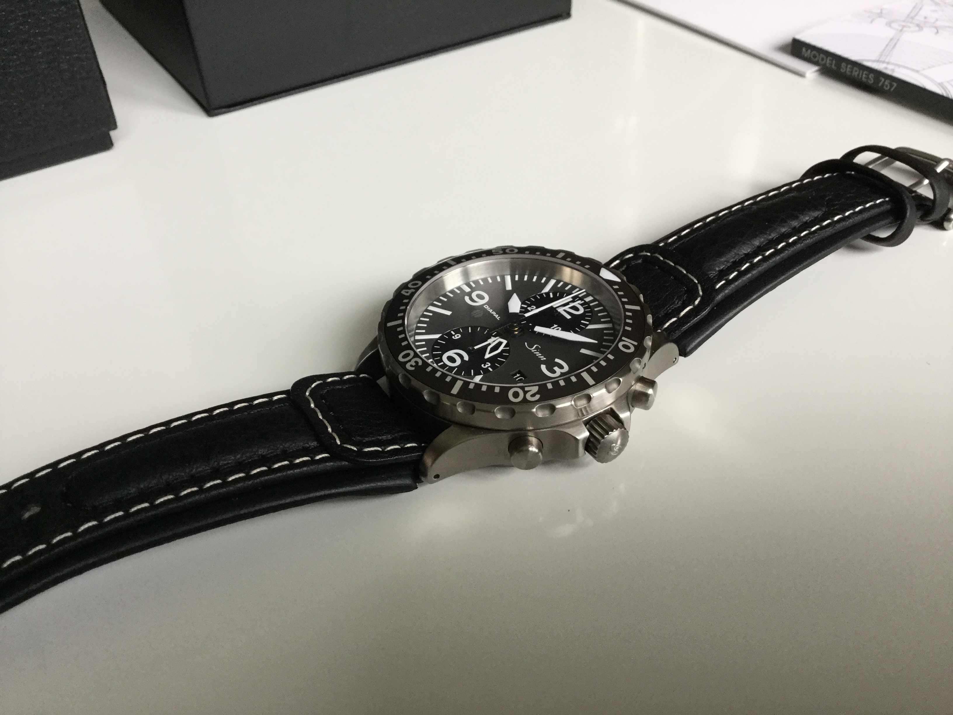Die Sinn 757 Diapal wurde von mir im Oktober 2017 (vor 5 Wochen) erworben und ist seitdem ungetragen, weil es Probleme mit der Lieferung der kleinen tegimentierten Schließe gab.