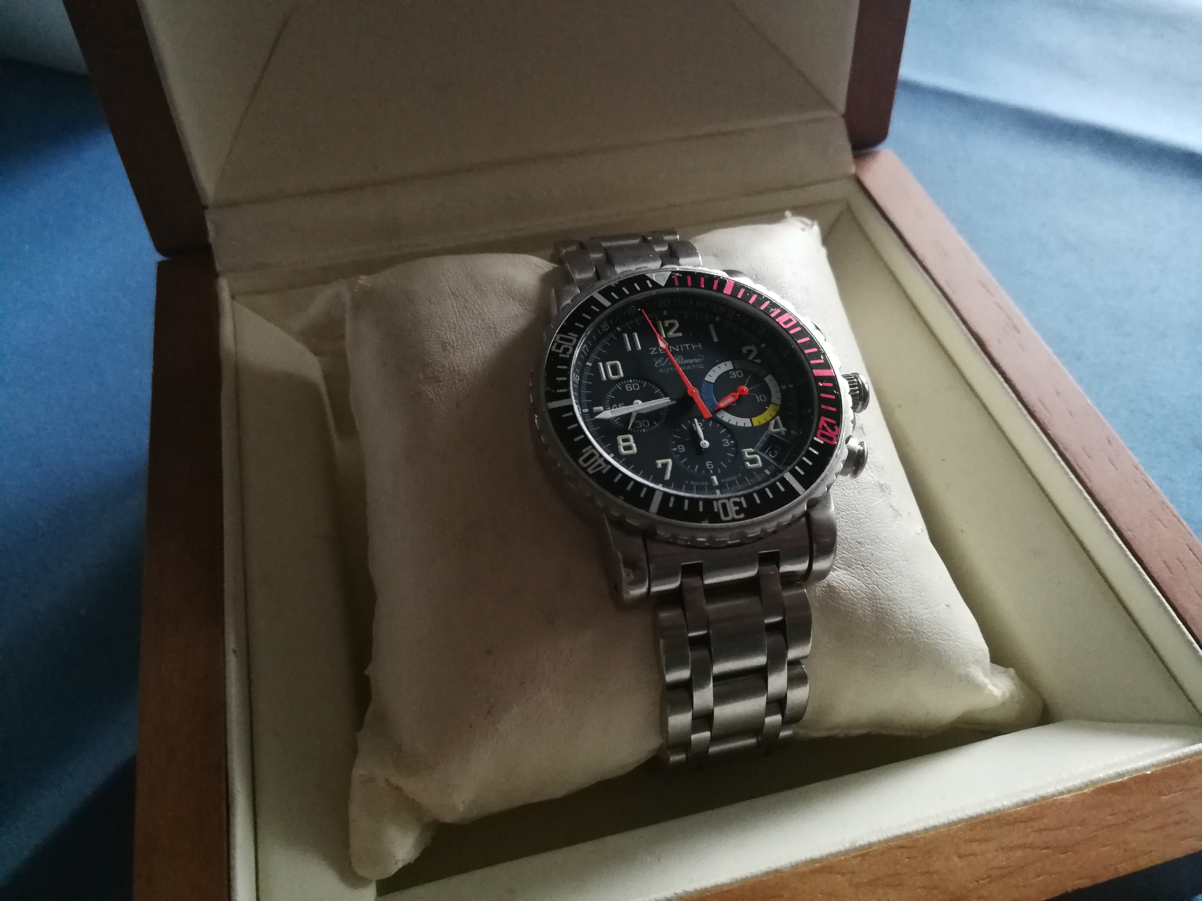 Na dann Glückwunsch zu dieser besonderen Uhr - das ElPrimero Kaliber ist halt schon der ultimative Automatikchronograph und in dieser Version auch mal eine richtig sportliche Variante