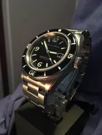 Sie hatte leider noch einen kurzen Aufenthalt beim Zoll im Transitbereich, Köln. Sie konnten dort wohl den Wert nicht so gut beziffern (die Bronze mit ETA Werk ist halt etwas teurer). Also, nach ein paar Mails mit FedEx und dem Beweis durch die PayPal Zahlung war dann alles in Ordnung.