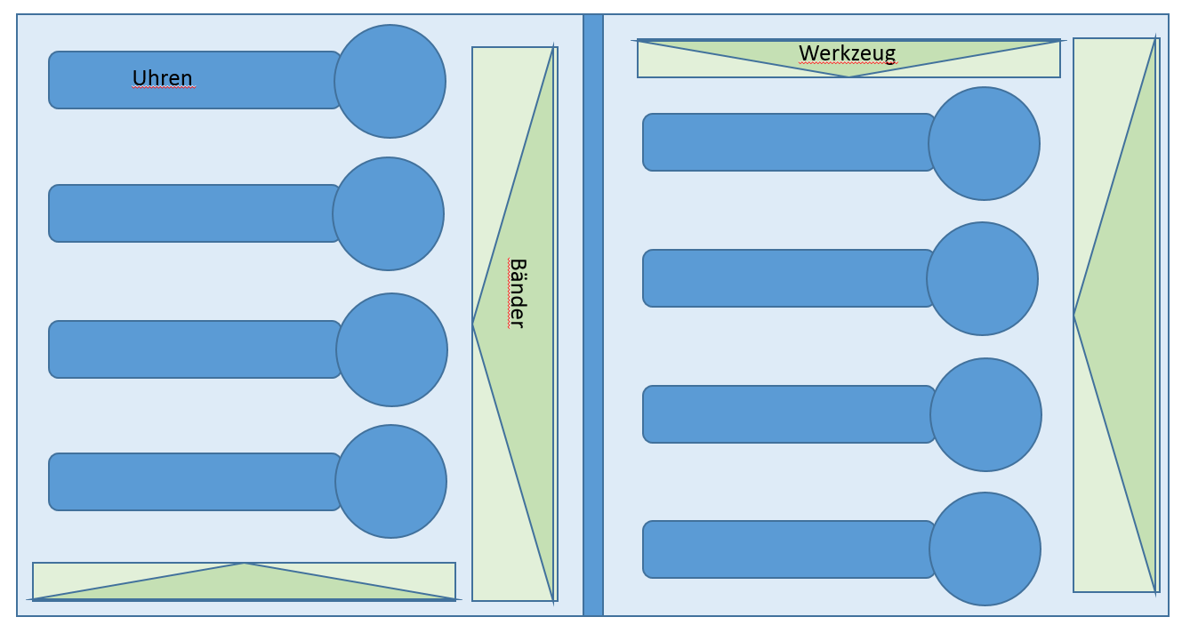 Genau diese meinte ich mit denen, die ich kenne. Ich suche nach so einer Art, wo die Uhren in der gleichen Richtung liegen, mit Zusatzfächern. Bei meiner Zeichnung sind die Fächer anders versetzt.