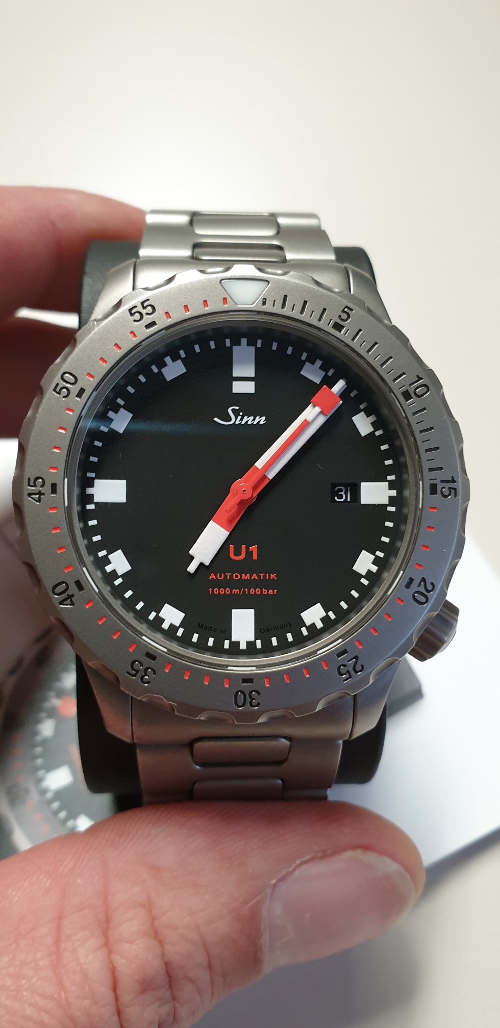Es handelt sich um eine U1 mit Metallarmband volltegimentiert. Die Uhr wurde im Dezember 2017 in Frankfurt durch mich erworben.