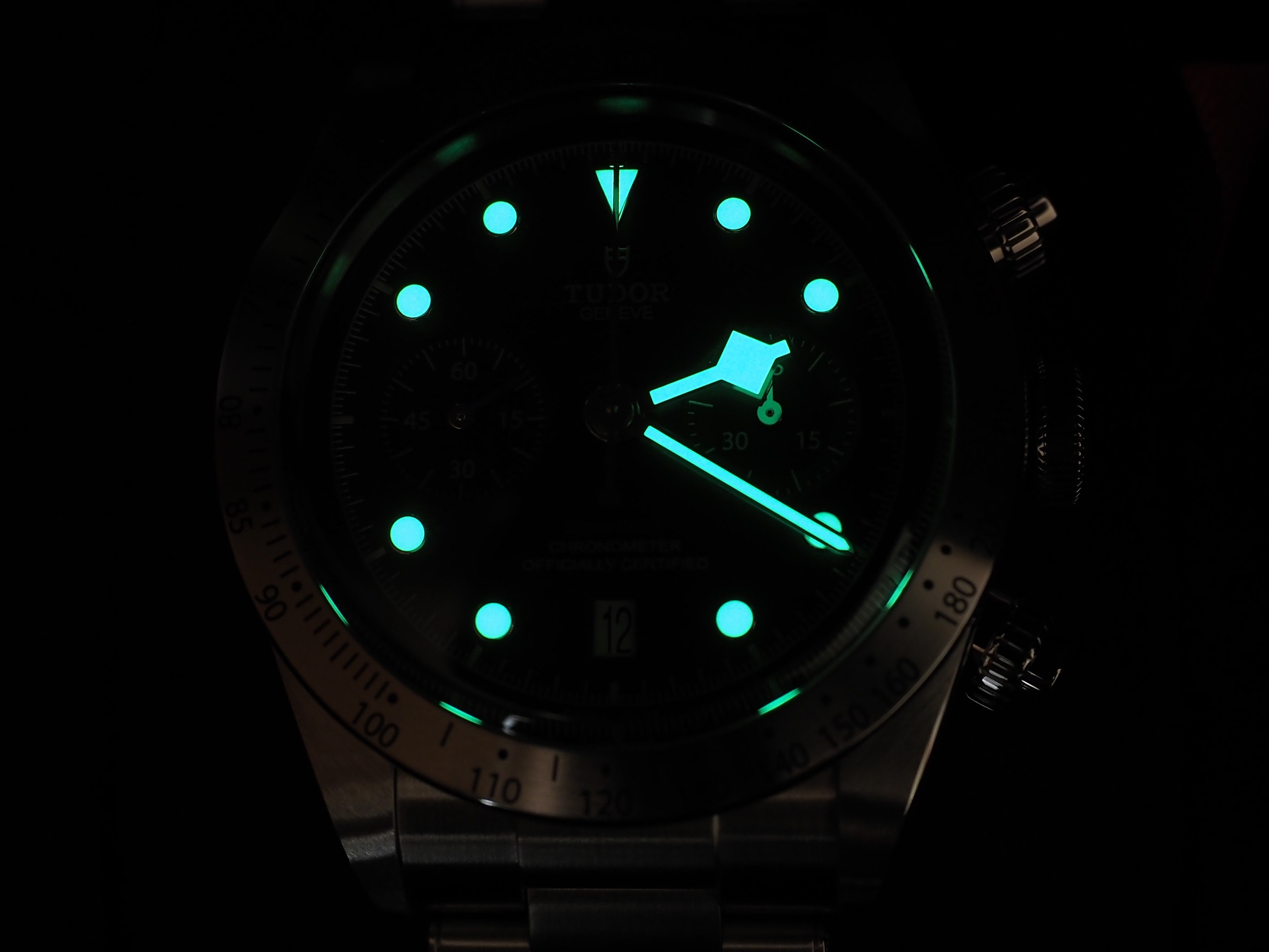 Die tiefer gelegten Totis, das Band mit der Keramikkugel, die mittels Politur biColor gehaltene Lünette, jene große ansehnliche Krone mit schwarzem Kragenbund und Gravur, ............ alles sehr ansprechend. Sportlich elegnat kann die Uhr m.E. zu jedem Dresscode getragen werden. Das Gehäuse hat keine Hotspots, alles fühlt sich sehr wertig an und ist auf sehr hohem Niveau verarbeitet. Die Ablesbarkeit ist sehr gut, ihre Ganggenauigkeit in der kurzen Zeit der Beobachtung sehr gleichmäßig. Das Tragegefühl ist mehr als sehr angenehm.