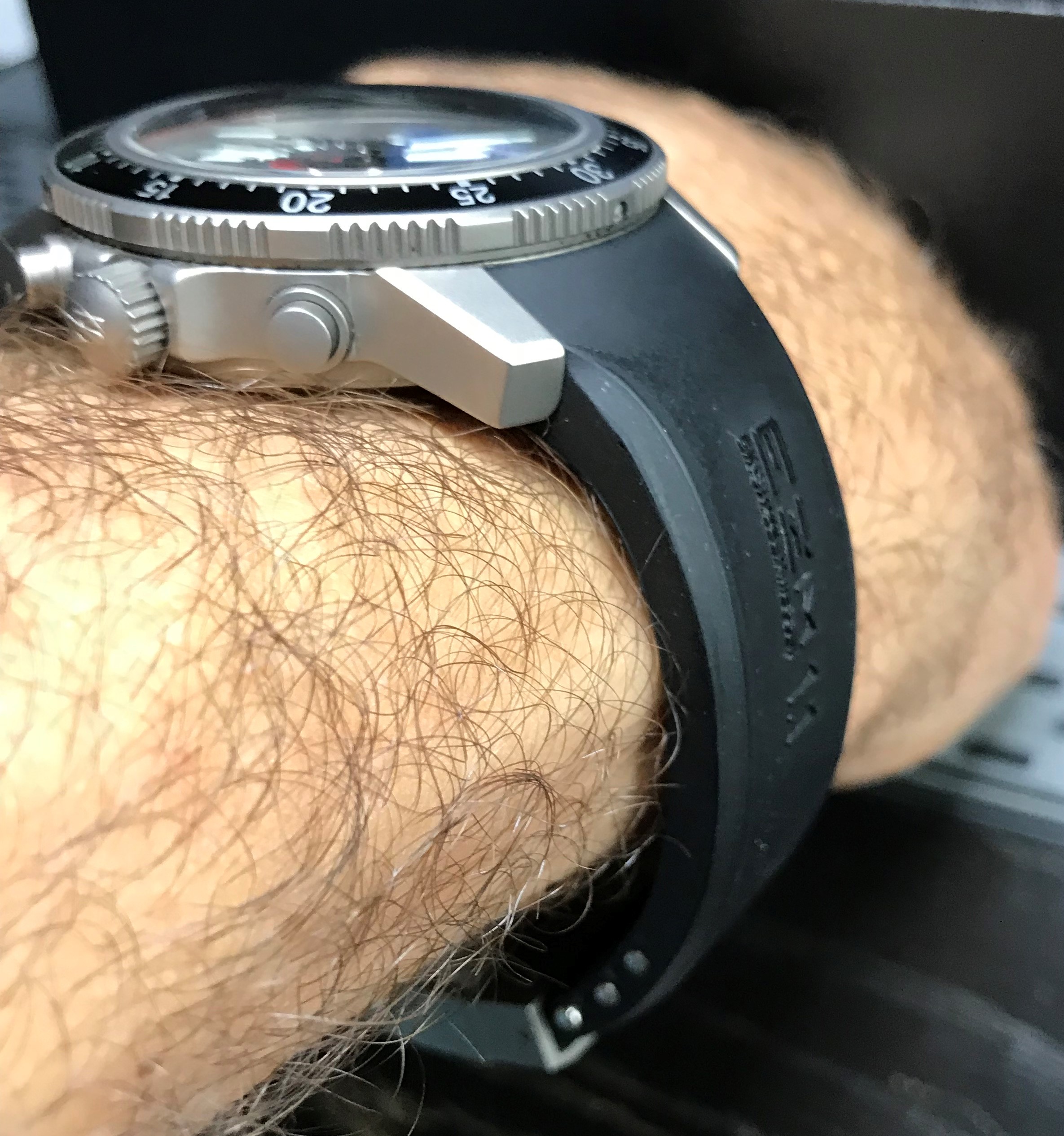 Ich komme zu dem Schluss, dass man für 50€ für ein Silikonband sicherlich nicht mehr erwarten kann, nur passt es nicht zu meinen Anforderungen an ein professionelles System (Schließe und Band) bei einer Uhr nahe 4K Euro.