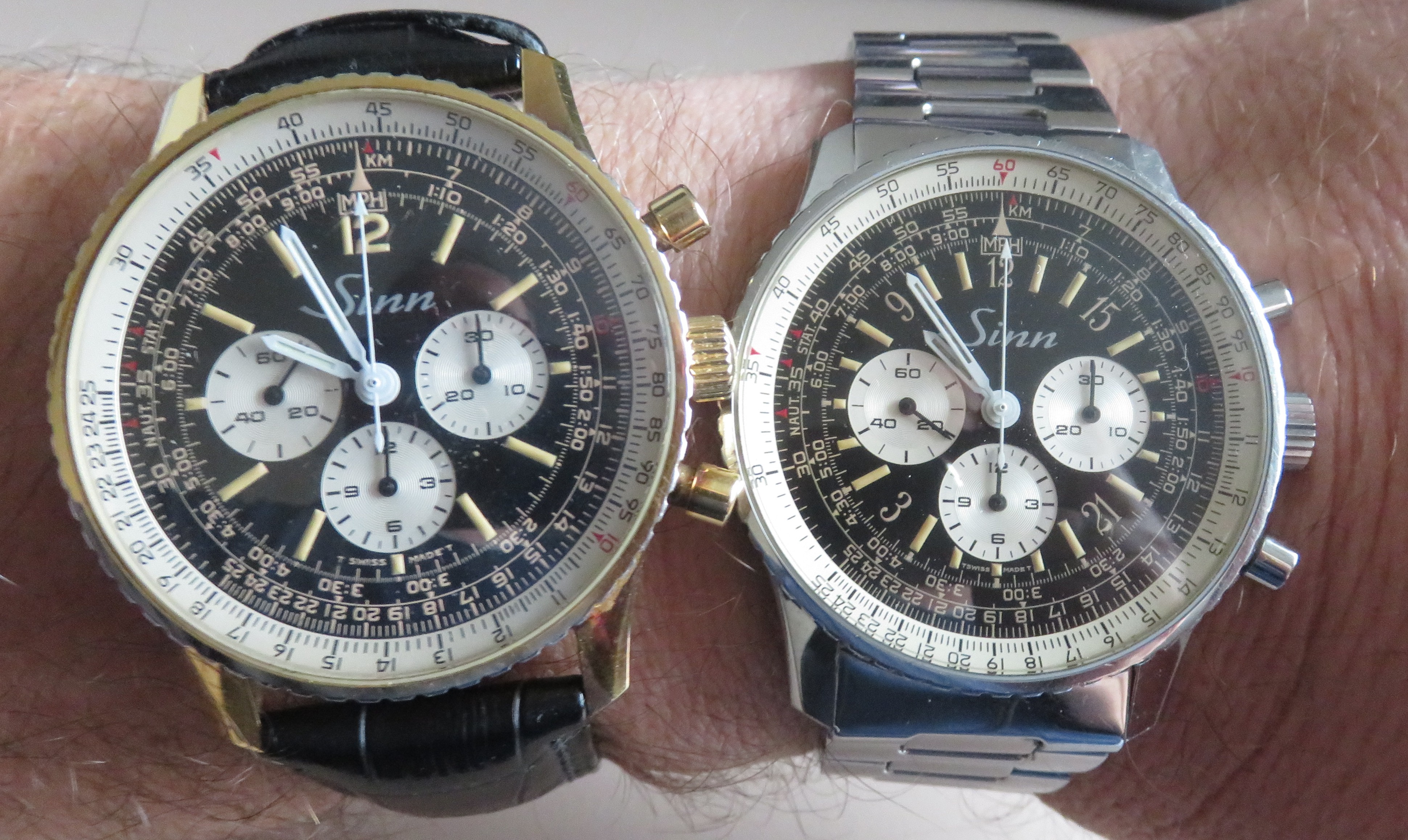 Beide sind noch mit dem Lemania 1873 Handaufzugswerk bestückt, alos noch aus der Zeit wo Herr Sinn Bestände von Breitling gekauft hat :)