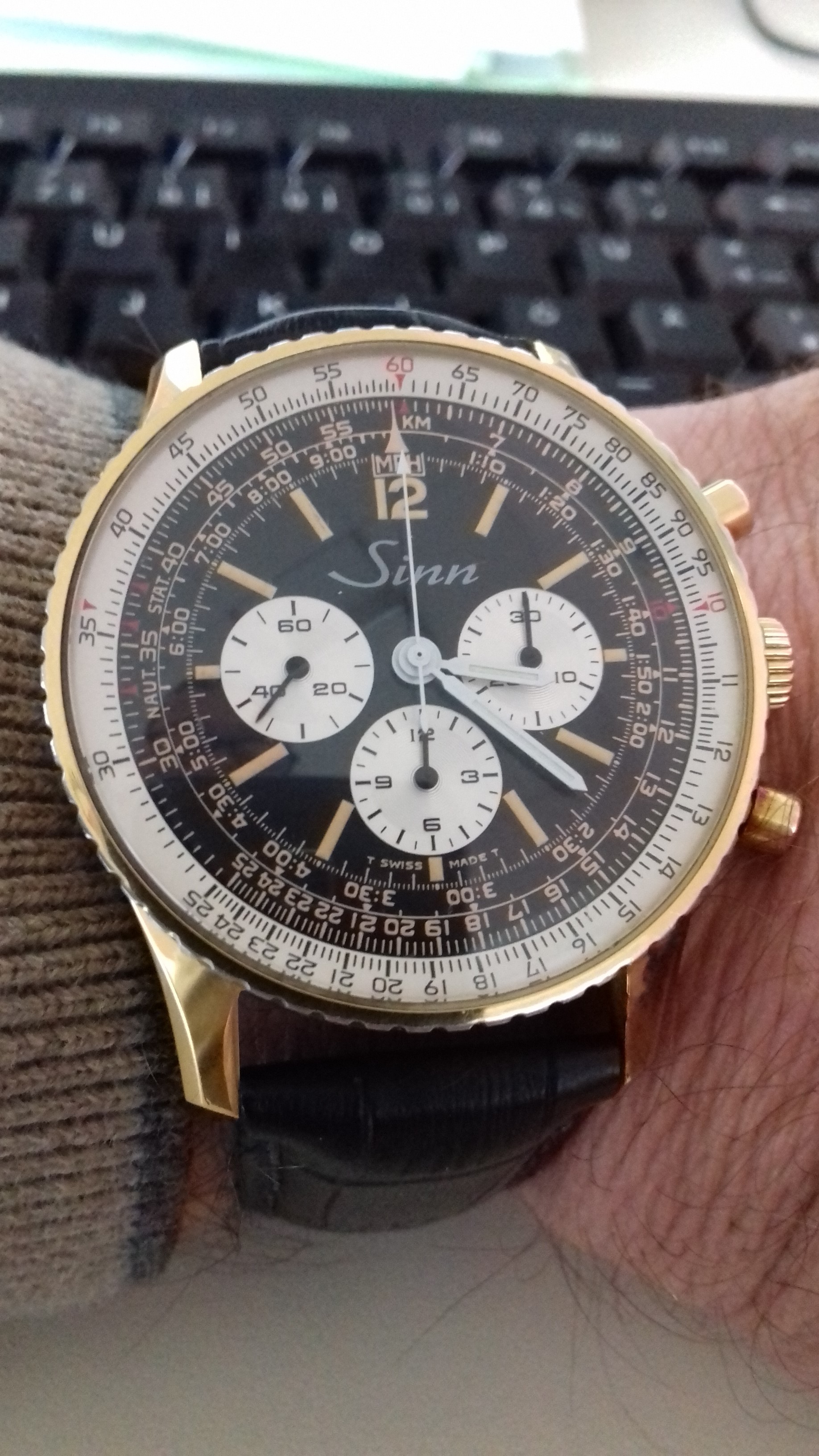Ursprünglich wollte ich mir damlas eine 903ST mit Lederband kaufen, denn das Geld für eine Breitling hatte ich nicht, dann hab ich aber eine Privatanzeige für den Verkauf einer Sinn 903 gesehen, noch dazu in meiner Nähe. Bin dann mit meiner Frau hingefahren, musste aber fesestellen dass die Uhr ja in Gold war, ich aber auf Stahl fixiert, während ich die Uhr begutachtete hat meine Frau mit dem Verkäufer über den Preis gesprochen, und zu guter letzt sagte Sie zu mir um das Geld musst du Dir diese Uhr nehmen. Was ich ich dann mit Wiederwillen gemacht habe.