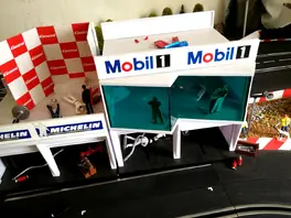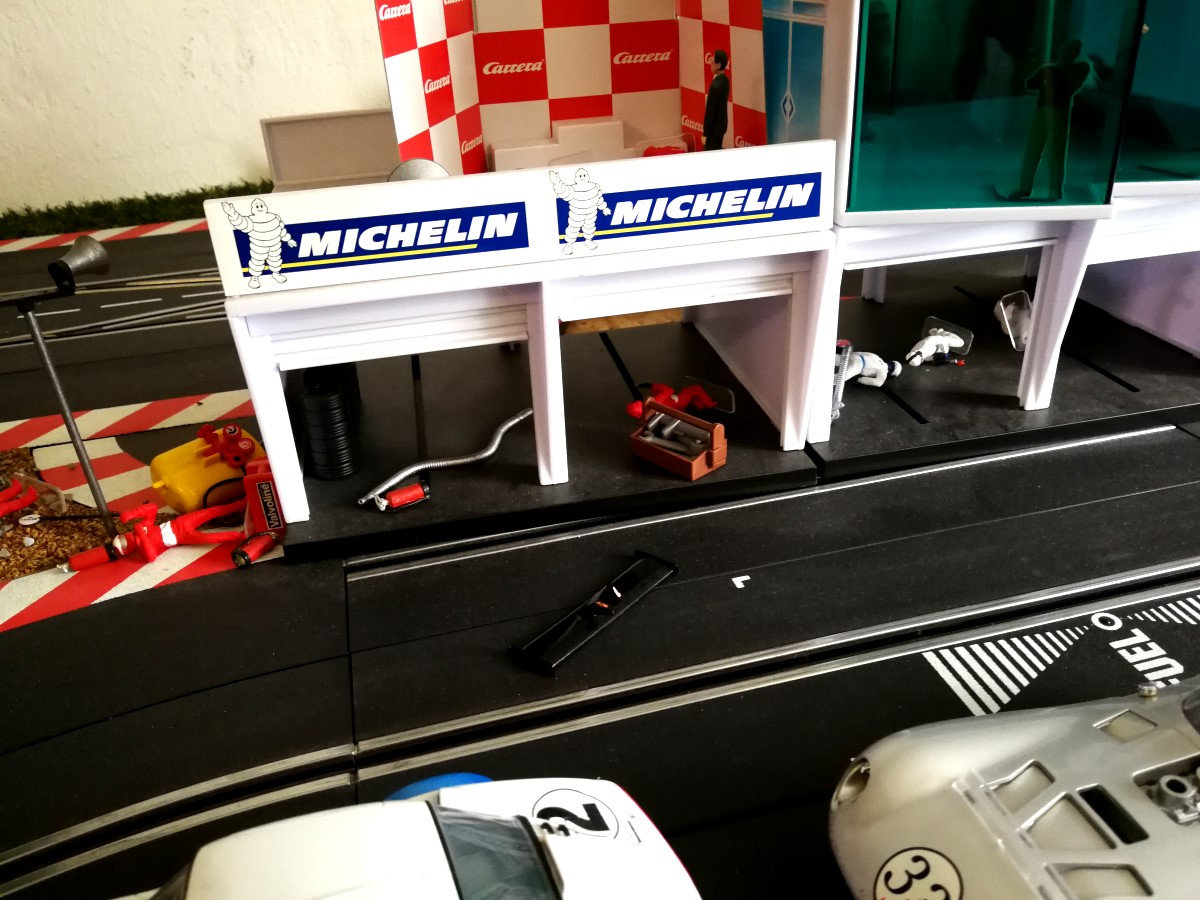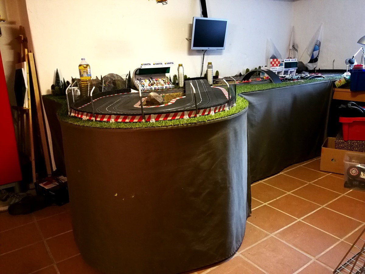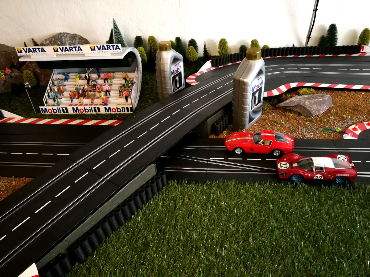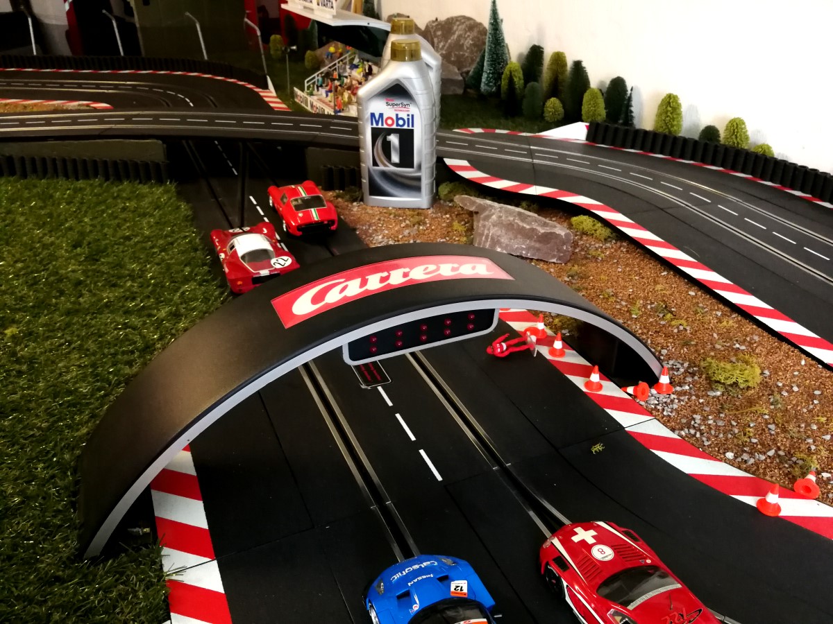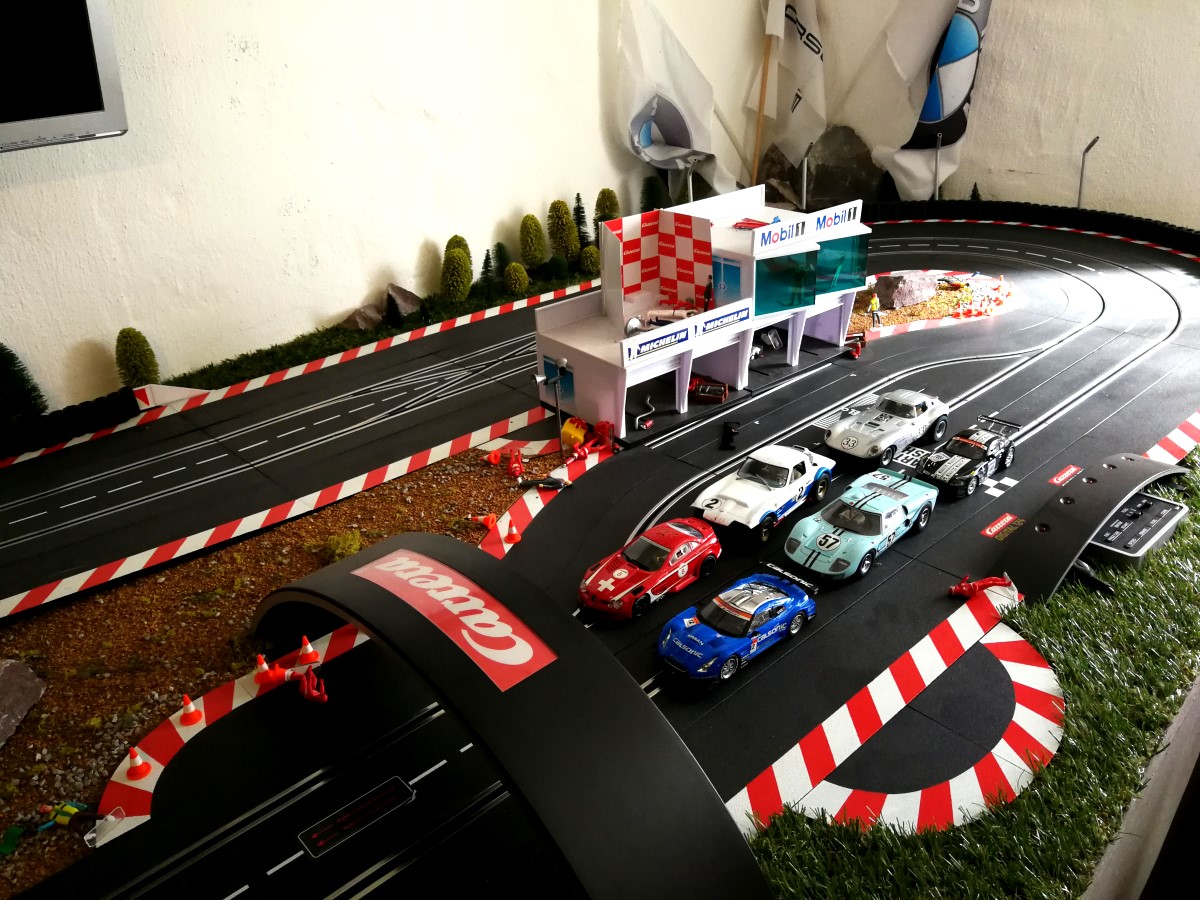 Extrem umfangreiche und für ca. 3.500€ absolut professionell aufgebaute digitale Carrera Bahn in den beiden Massstäben 1:24 und 1:32 (über Auswahl des jeweiligen Trafos umschaltbar). Mit 8 Fahrzeugen beider Massstäbe (1:24 = Oldtimer-, 1:32 = Tourenwagen). Inklusive jeder Menge Sonderteile (alle original Carrera!) ,für ca. 300€ Reifenstapel