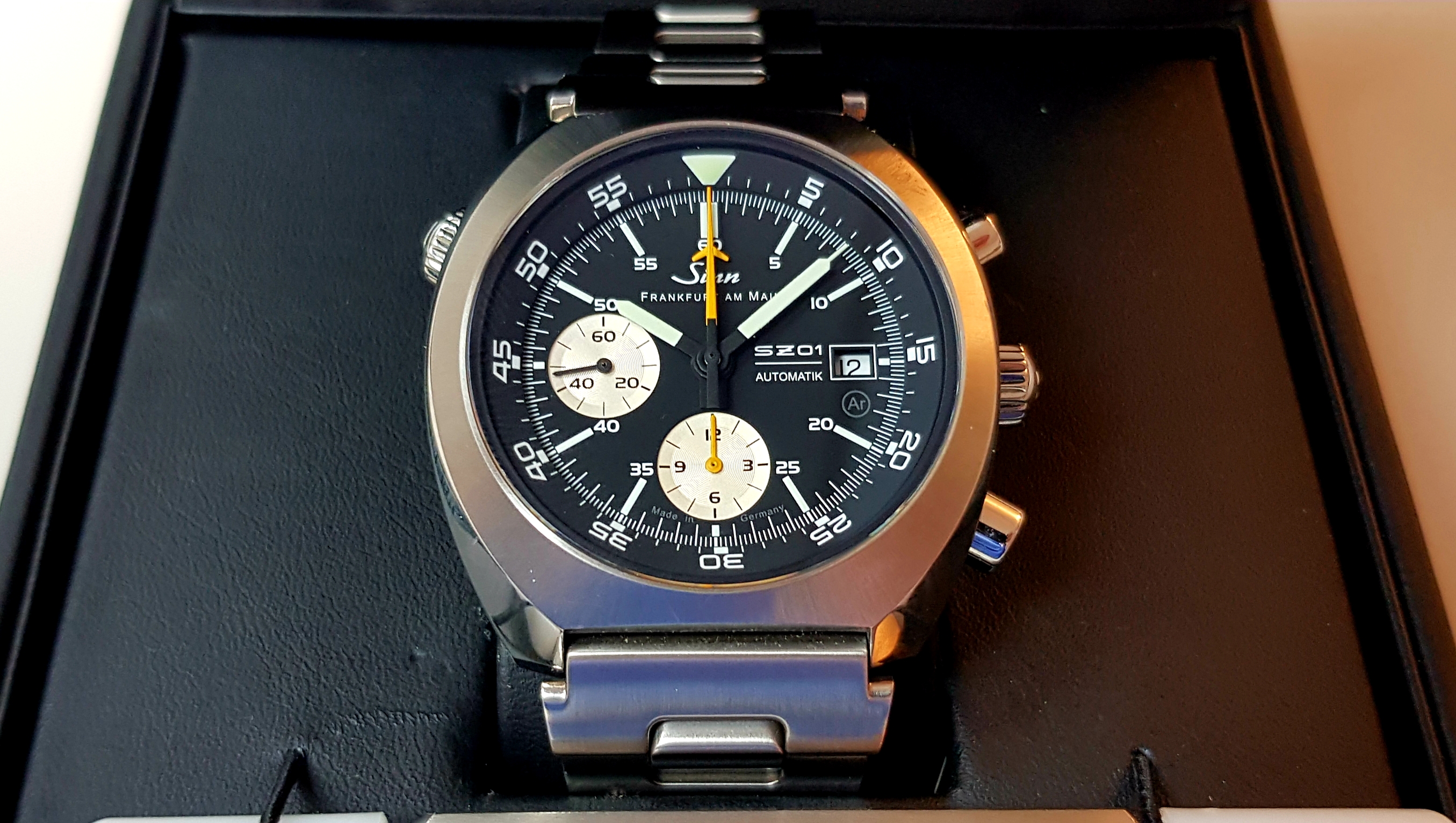 Der Zustand der Uhr ist aus meiner Sicht prima, aber sie hat natürlich minimale Gebrauchsspuren. Wer also eine neue Uhr sucht, suche bitte weiter. Allen anderen biete ich die Uhr zum Festpreis von 3.000 EUR an. Sollte sich jemand sehr spontan entscheiden, würde ich ggf. kurz zum Stammtisch dazukommen. Natürlich ist alles dabei, was dazu gehört, also ein Full Set!