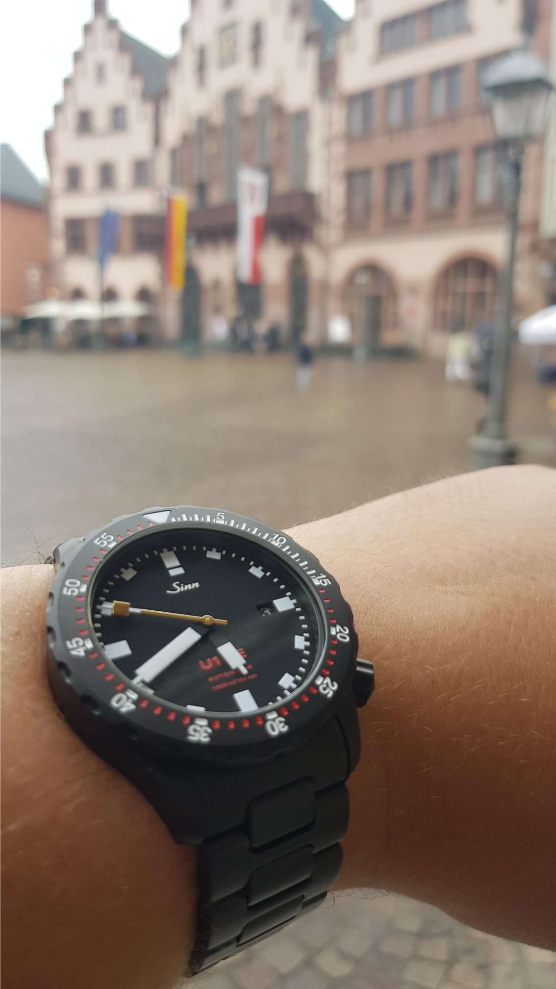 • Soeben habe ich im Internet ein Video der Sinn U1 DE gesehen und muss meine kritische Aussage von vorher etwas revidieren. Der goldene Sekundenzeiger ist tatsächlich seeeeeehr golden, also wirklich wie das Edelmetall und glitzert und funkelt in dieser Uhr wie verrückt. Insofern kann das schon ein Eyecatcher sein. Man muss halt die Grunduhr, also die U1 mit ihren Maßen und Besonderheiten und dann auch noch in schwarz mögen...