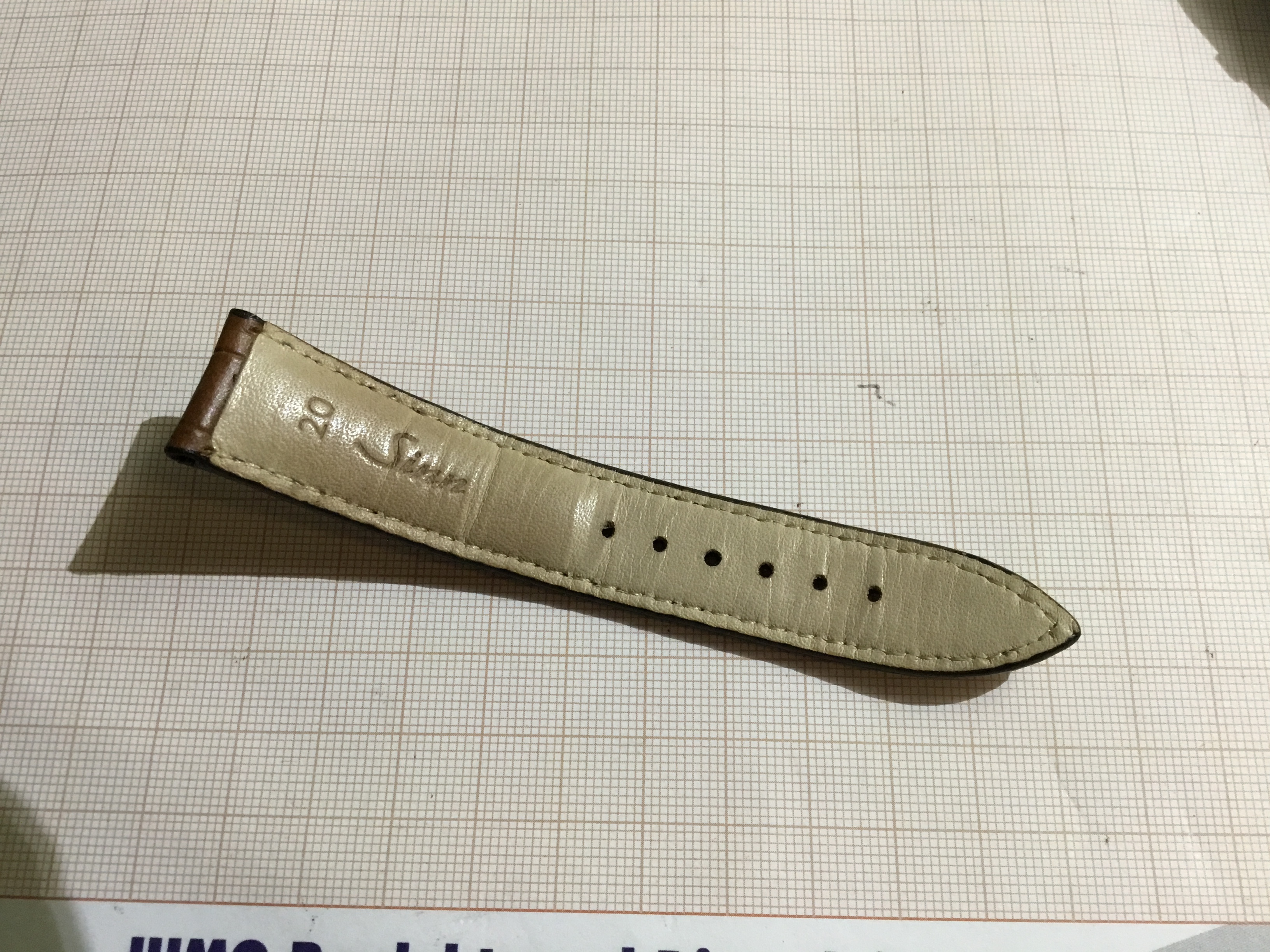 Bei meinen originalen Hailederbändern löst sich die Verklebung am Bandanschlag (Bild 1 und 2)! Leider ist bei diesen Bändern der Umschlag des Deckleders nur verklebt und nicht vernäht. Da meine 903 nur selten getragen wird, ist davon auszugehen dass der Kleber auch im Alter nachlässt. Ansonsten begünstigen Schweiß, Wasser und UV meiner Vermutung nach das auflösen der Verklebung. Man sieht es nicht unbedingt auf den ersten Blick ob die Verklebung noch hält, ruhig mal vorsichtig etwas genauer anschauen. Ein tragen der Uhr mit offener Verklebung kann den Absturtz vom Handgelenk bedeuten, da des umgeschlagene Ende einfach durch den Federsteg am Bandanschlag durchrutscht (wie bei mir geschehen, meine 303 fiel glücklicher Weise auf die Couch). Mein Versuch den Umschlag nachzukleben funktionierte auch nicht, da scheinbar Kleber auf Latexbasis verwendet wurden. Kontaktkleber gehen hier keine Verbindung ein. Ich bin noch am experementieren, wahrscheinlich wird es eine Lösung mit kleben und nachnähen. Ich verstehe auch nicht den Bandhersteller, meiner Meinung nach hätte der Umschlag unter das Futterleder geklebt und drübergenäht werden sollen, wie im Bild 3 zu sehen.