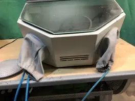 gebraucht, mit zwei Tanks, also Grundausstattung, mit Druckregler, Absaugungsanschluss abzugeben,