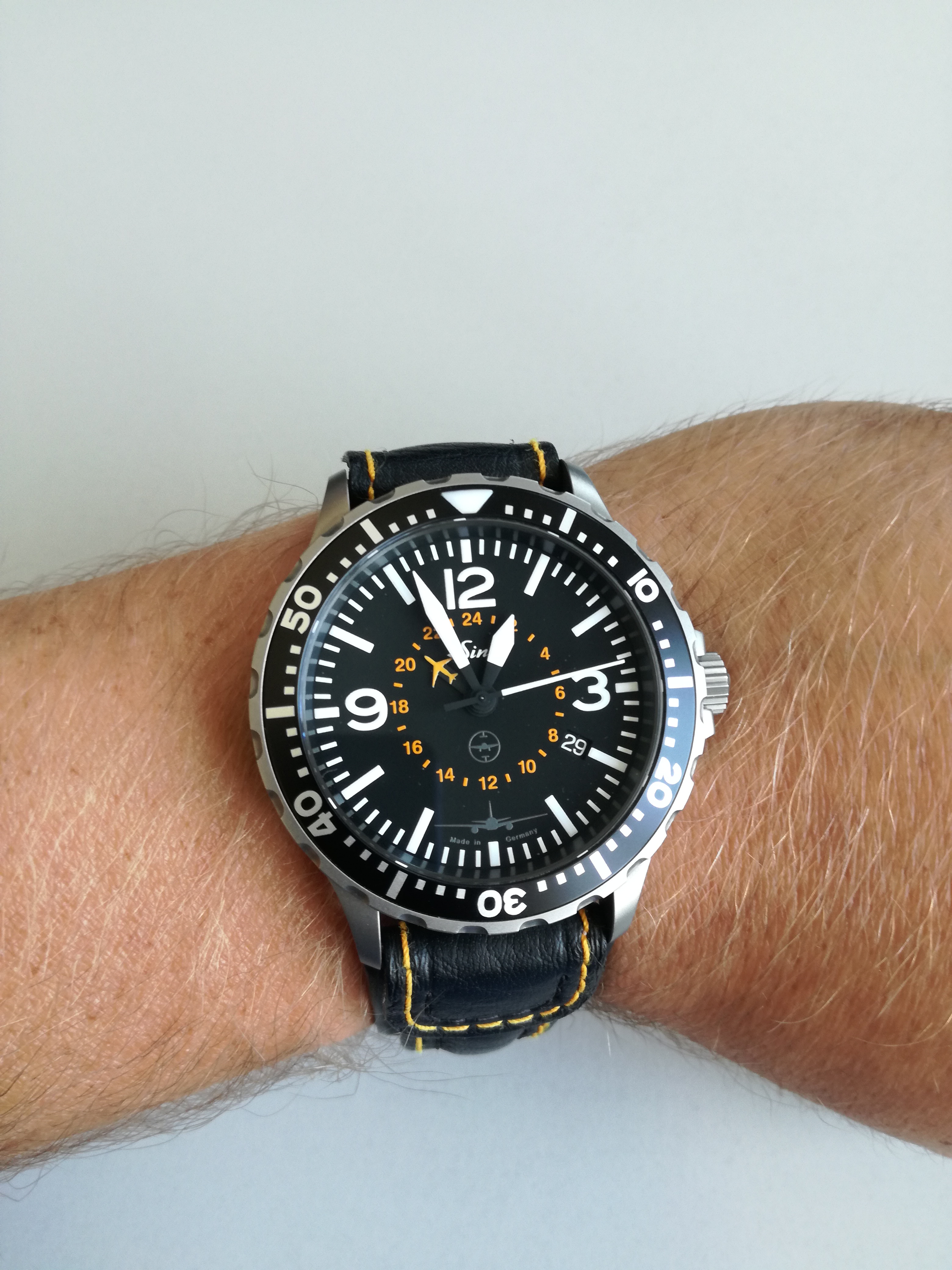 Es hat dann 10 Jahre gedauert bis 2019 eine weitere Sinn dazu kam, nämlich die 857 UTC TESTAF LH Cargo. Das übersichtliche Design, die Tegimentierung des Gehäuses, die Farbgebung mit den orangen Akzenten sowie die Limitierung der Uhr auf 777 Stück haben mir einfach sehr gut gefallen.