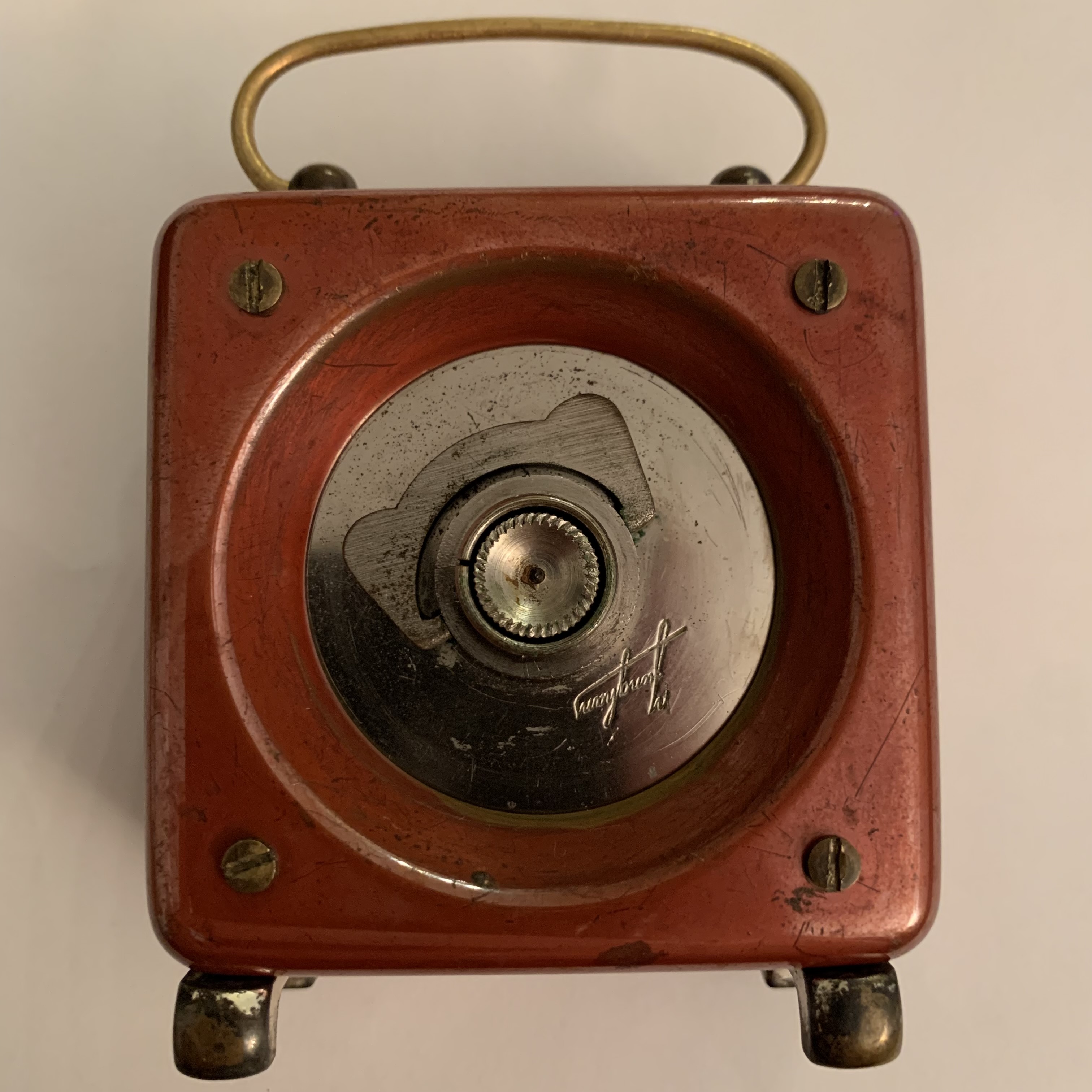 • Hier ist so eine frühe Autouhr mit original Einbautopf die speziell für Mercedes produziert wurde.