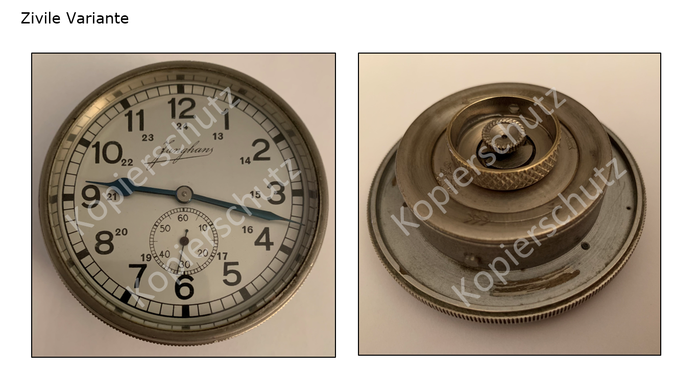 Gut zu erkennen sind hier schon die beiden Einbauvarianten die auch im militärischen Bereich verwendet wurden. Die Variante mit dem Bajonettverschluss wurde bei der militärischen Variante mit dem Anforderungszeichen FL 22600 noch bis zur Einführung der FL 23885 und dem Kaliber J 30BZ im Jahre 1938 verwendet.
