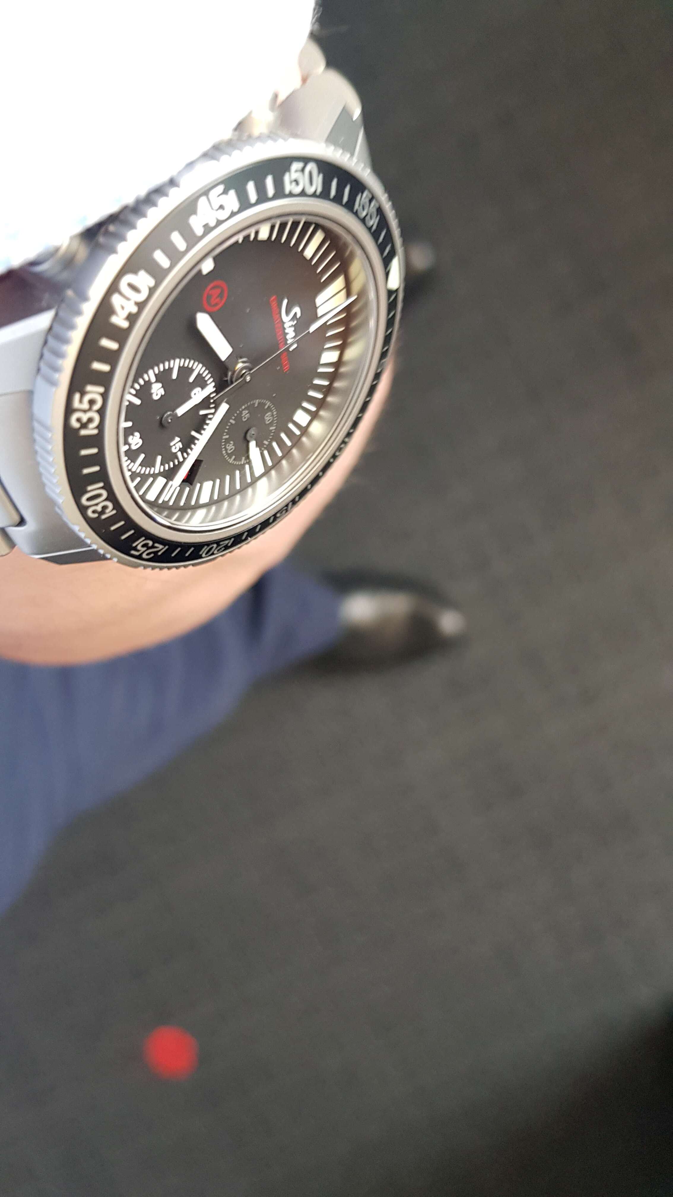 - die Gehäuse-Tegimentierung, eigentlich bei Sinn inzwischen fast schon State of the Art bei Einsatzuhren fehlt bei diesem Modell leider und ist auch nicht gegen Aufpreis (wie bei den Us) zu bekommen.