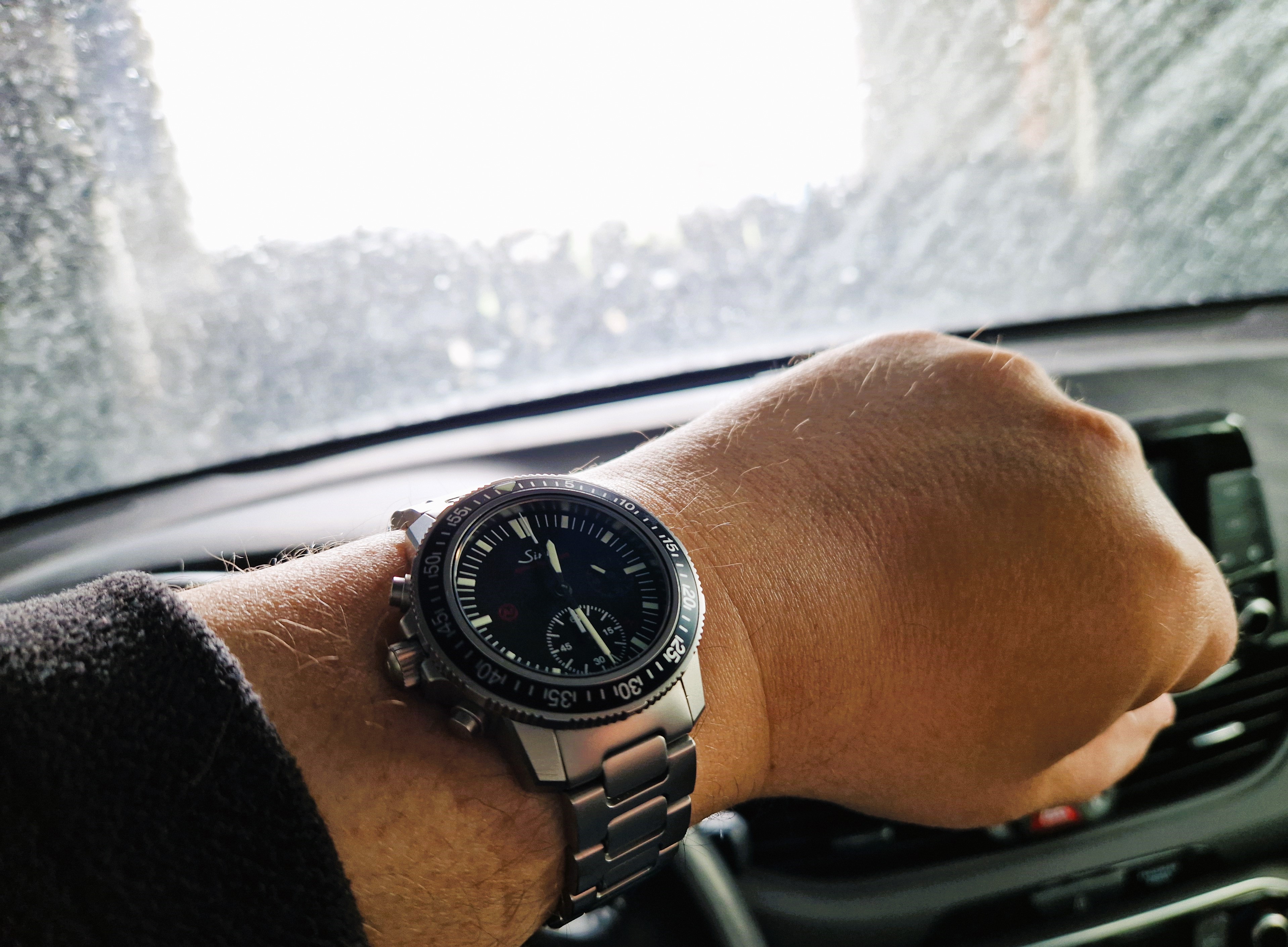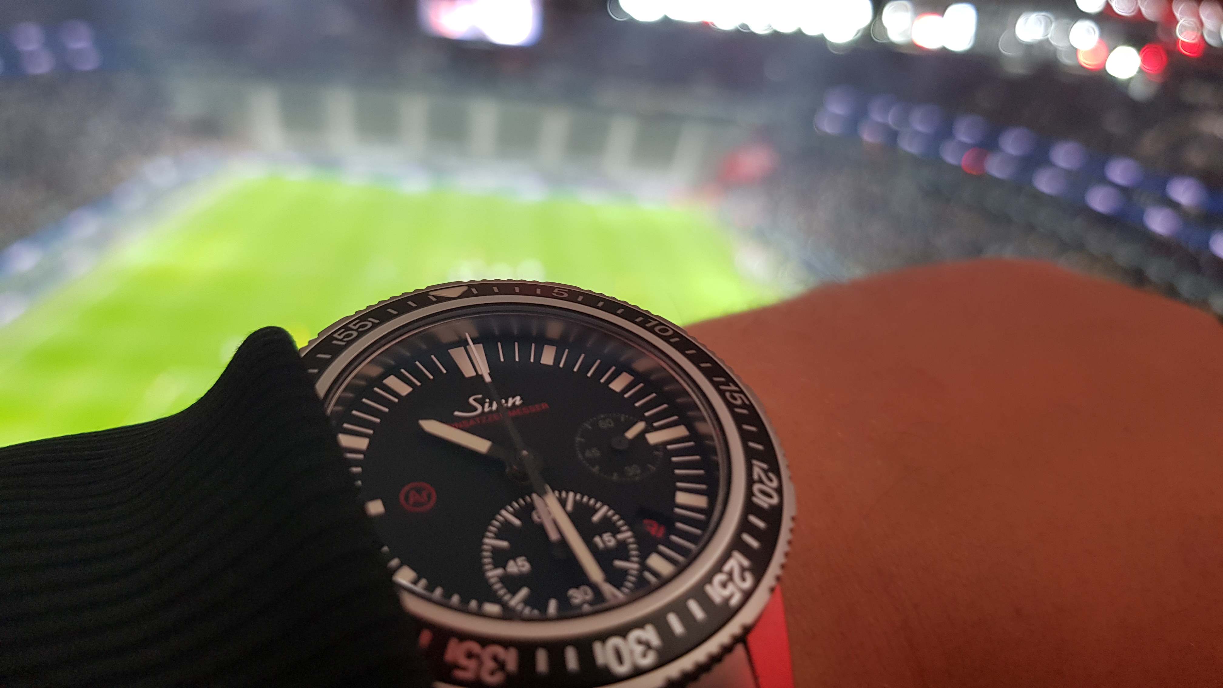 Die Uhr ist tags wie abends bzw. bei Dämmerlicht, auch dank der super Leuchtkraft perfekt ablesbar, d.h. Stunde, Minute, perm. Sekunde rechts sowie alle 12 Stunden-Indices, 12Uhr doppelt wie alle Taucher und das Leuchtdreieck der Lünette. Wie bereits erwähnt ist auch die Stopfunktion perfekt einfach gelöst mit der Zentralsekunde, der 60 Minuten bei 6 Uhr sowie dem weglassen der Stopstunde, was der Ablesbarkeit ähnlich dem 1er EZM zugute kommt. Die Ablesbarkeit des 60 Minuten-Stoppers des Werksumbaus auf SZ02 bei 6 Uhr finde ich persönlich perfekt gemacht, sowohl Teilung als auch Größe und Position! Ich vermisse da die Zentralminute quasi überhaupt nicht, so ist es fast genauso gut.