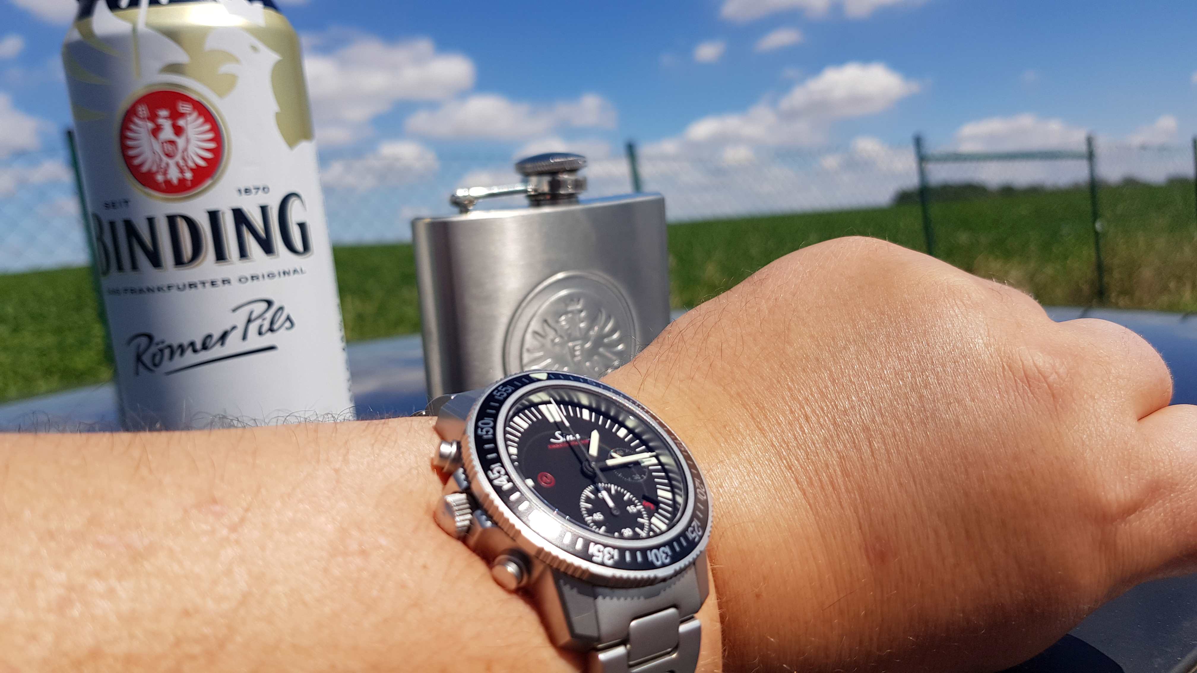 Ich trage die Uhr an dem Silikonband mit Dornschließe ohne Integration, was optisch schon prima zur Uhr passt und sich auch wirklich super trägt obwohl die Uhr mit ihren Sinn-typischen 15mm eher hoch ist.