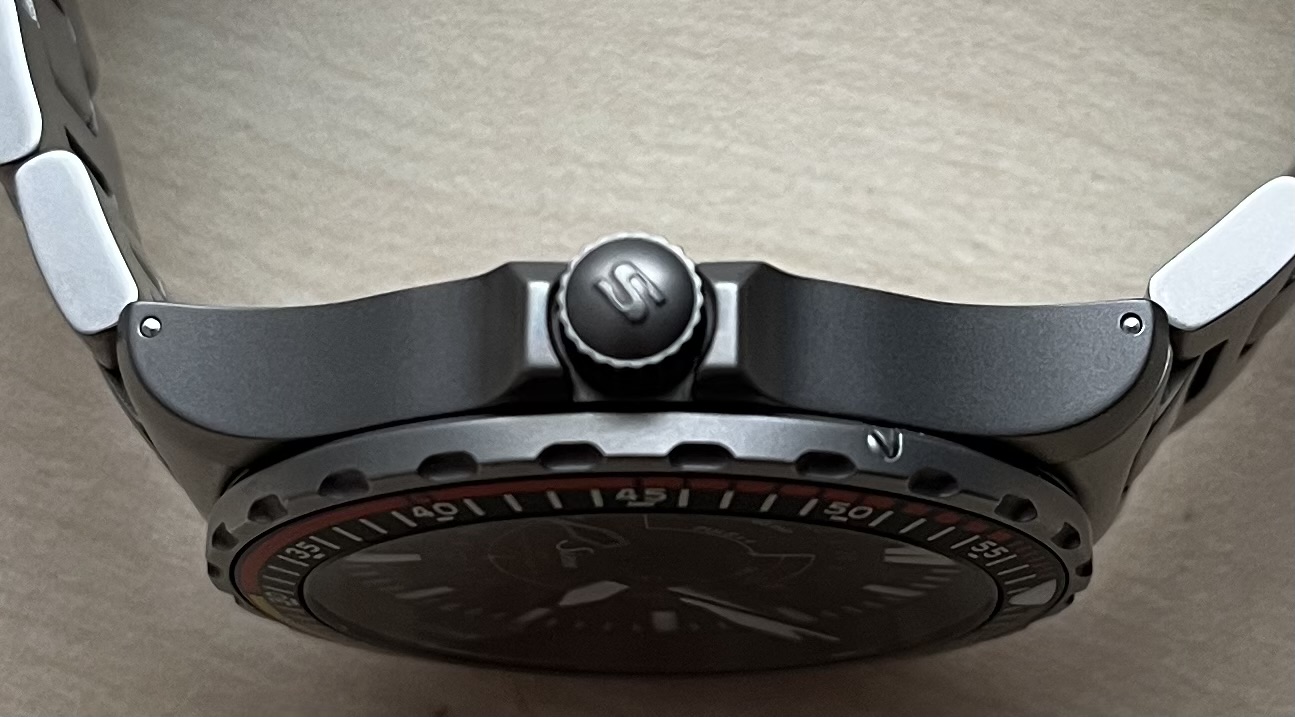 Die Uhr hat aus meiner Sicht so gut wie keine Gebrauchtspuren. Lediglich auf der Schliesse sind minimalste Microswirls vorhanden und auf der 12-Uhr Bandhälfte sind auf einem Bandglied kaum sichtbare Spuren vom Deskdiving vorhanden.