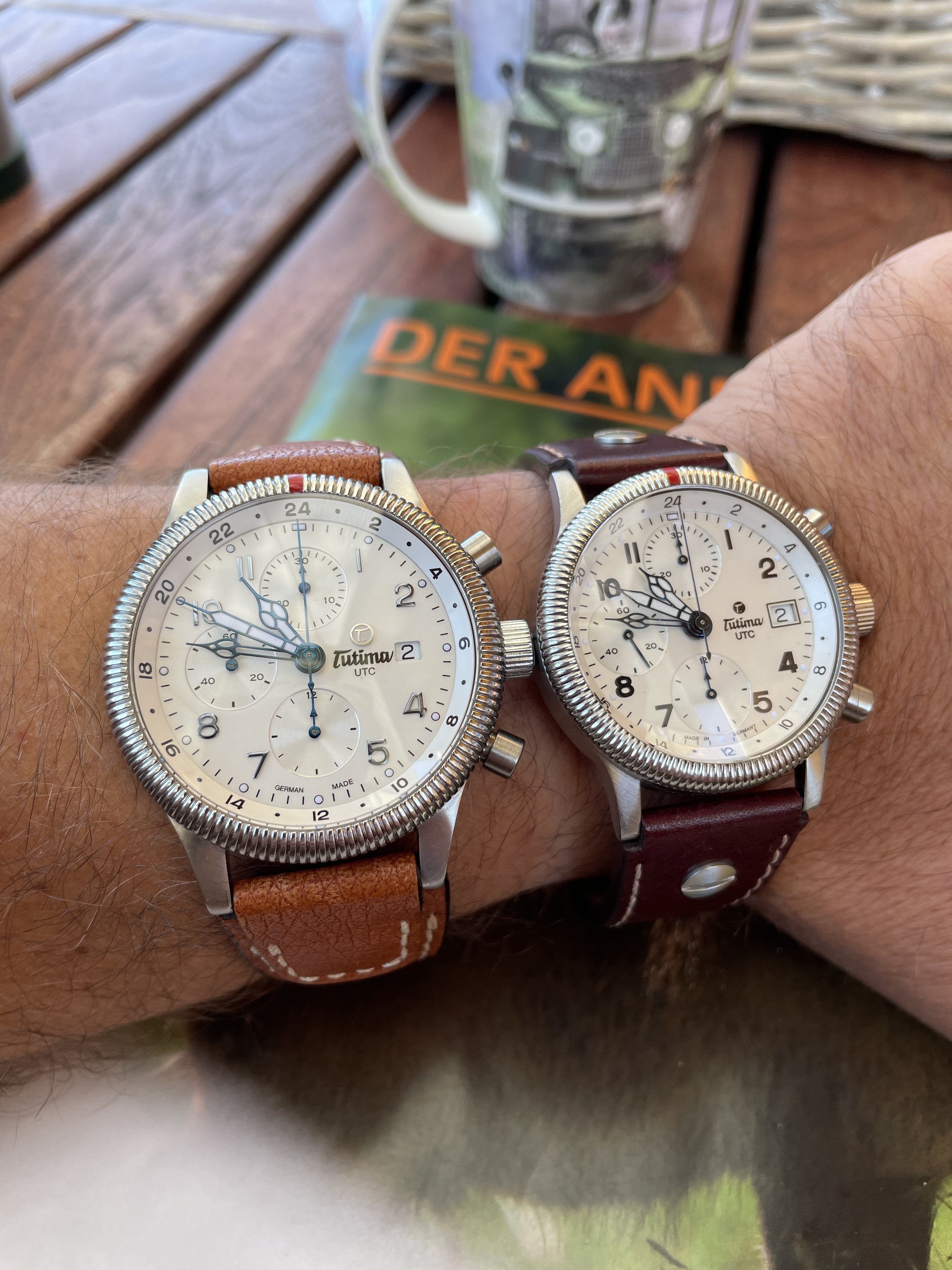 Eine Sinn 103 mit Lünette und 41mm und 20mm-Band ist mir zu klein. Eine 6099 ohne Lünette, 41mm und 22m Band fühlt sich super an.Auch ist die HG-Auflagefläche, die Handgrösse, die Körpergrösse und Körperstatur mit entscheidend.