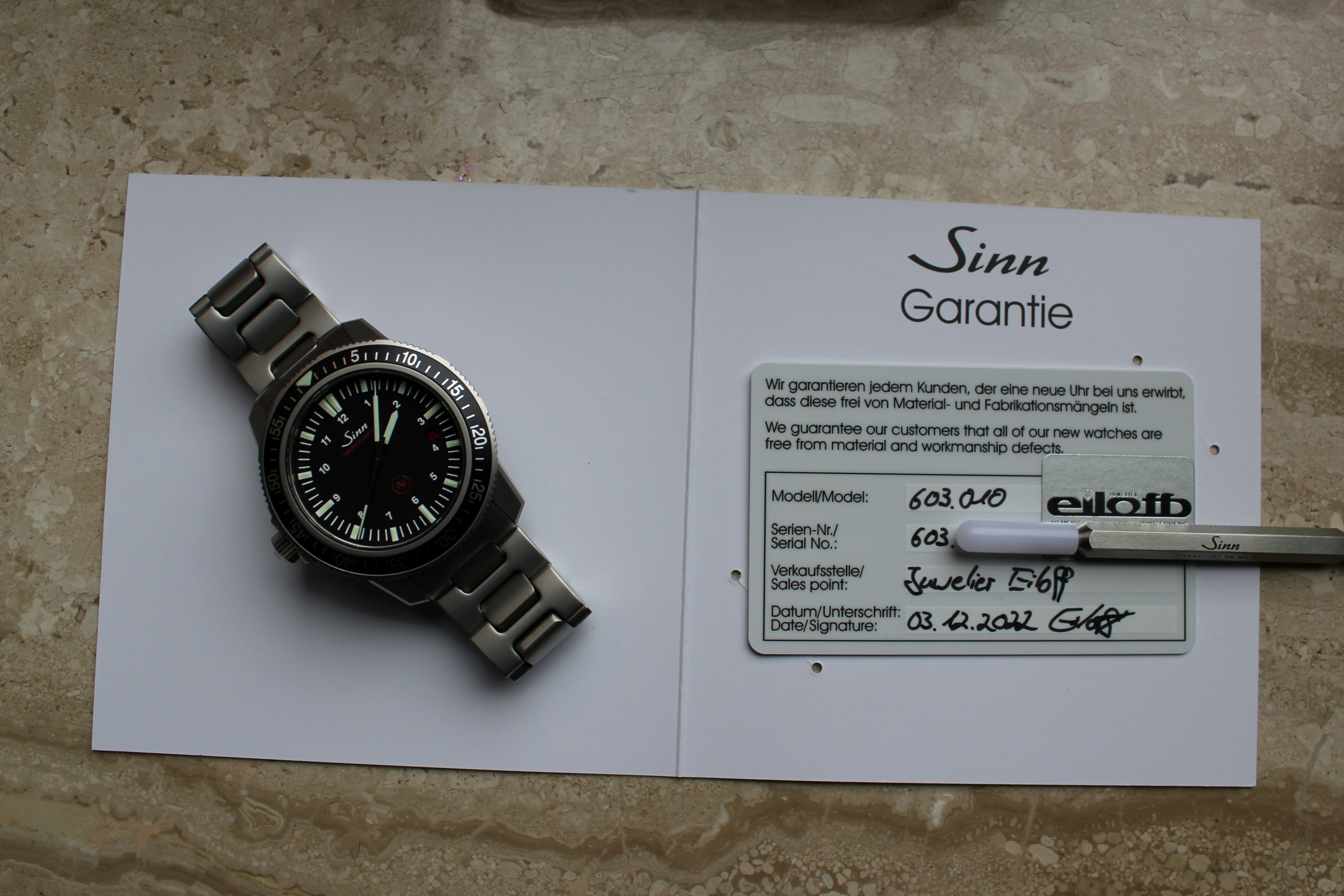 Der Vorbesitzer hat sie im Dezember 2022 neu bei einem Sinn-Konzessionär erworben und selten im Wechsel mit anderen Uhren getragen.