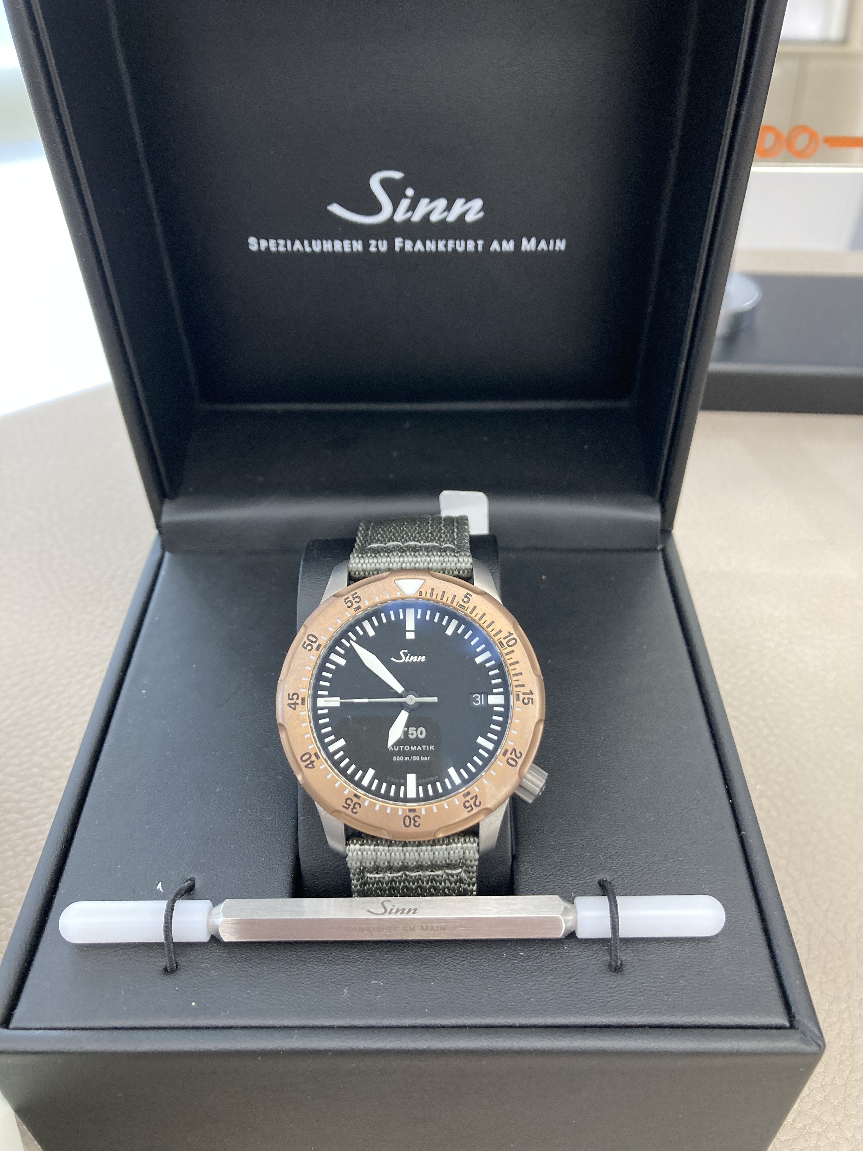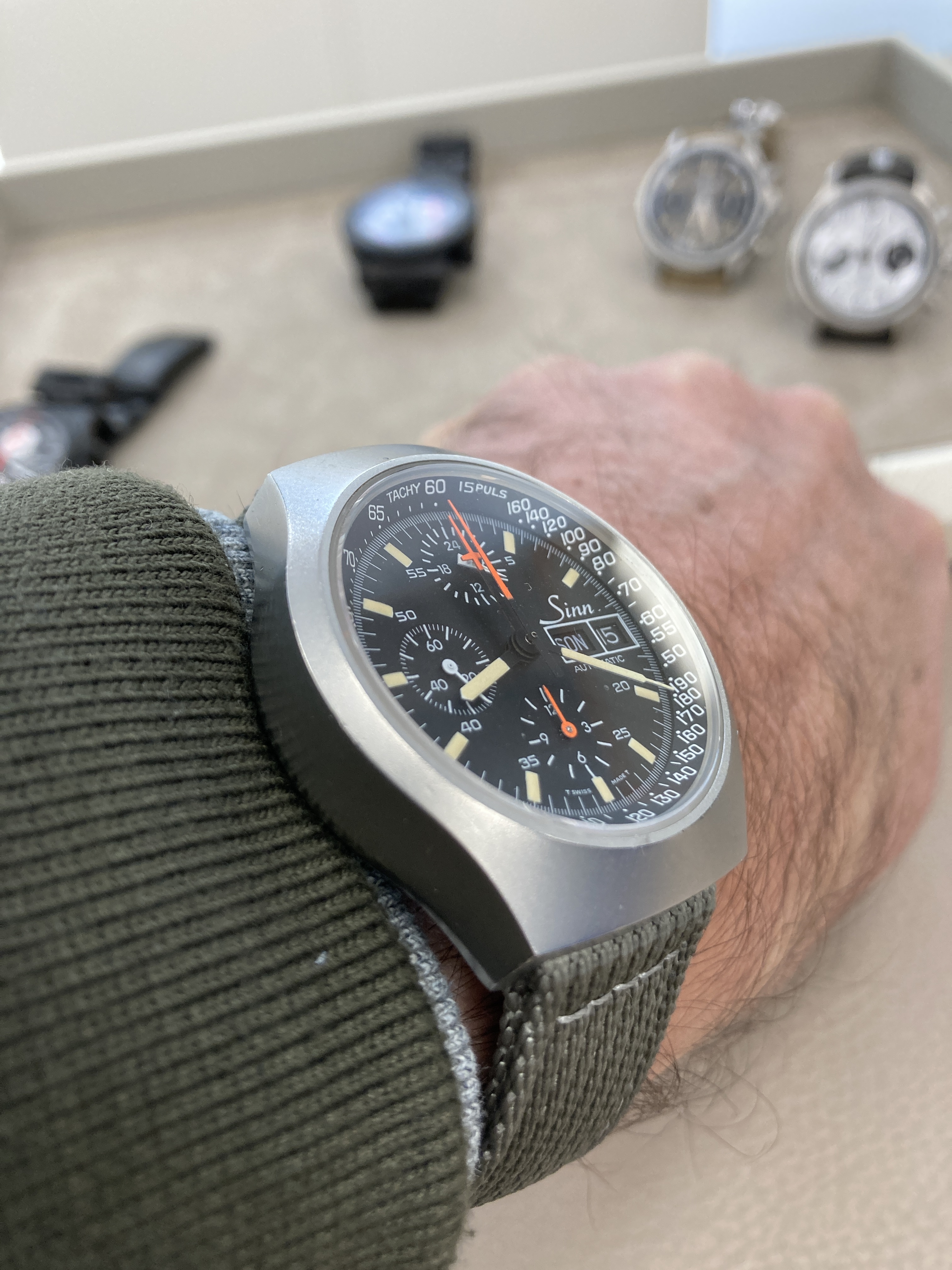 Über gemeinsame Bekannte der Uhrenbranche und die guten alten Zeiten hat es mir Spaß bereitet diesen Besuch erlebt zu haben. Das anschließende Gespräch mit dem Sinn-Außendienst-Mitarbeiter und die Durchsicht der Uhren in seinem Koffer waren natürlich wie immer eine Freude.