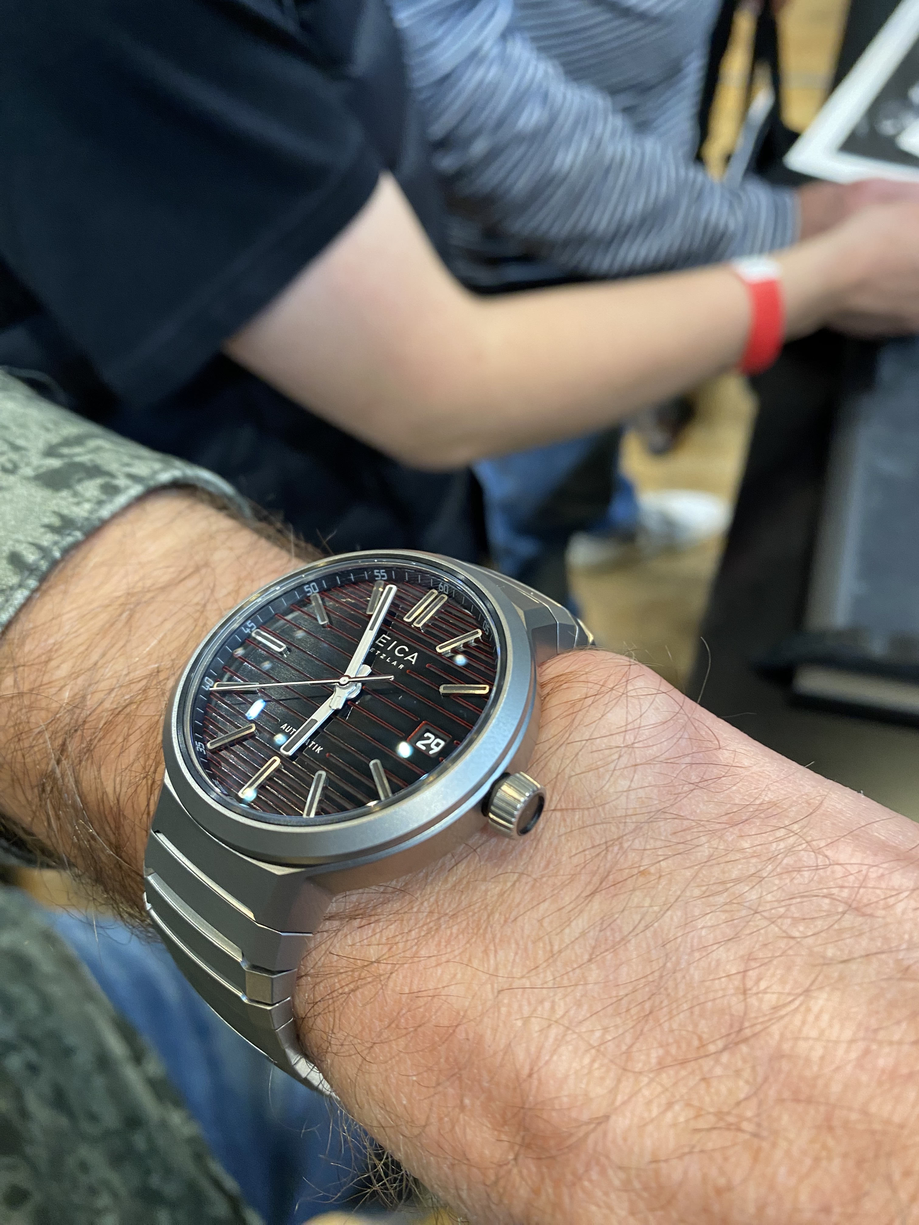 Auch ich habe mir die Uhren in Düsseldorf angeschaut und die neue Leica ZM11 aus Titan hat schon was, interessant ist das proprietäre Band-Schnellwechselsystem.
